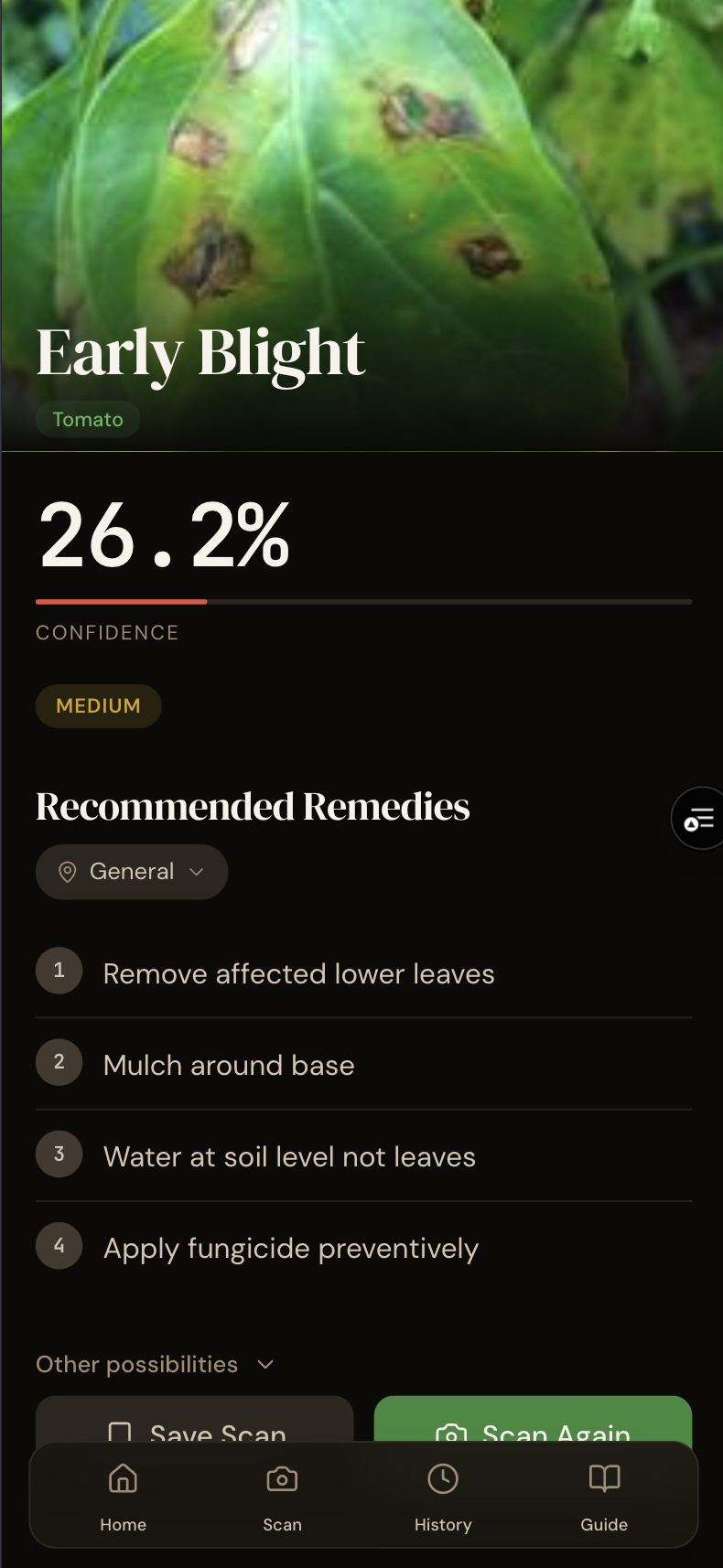 - Actionable Remedies: It doesn't just name the disease; it provides region-specific, organic remedy recommendations to help farmers save their harvest immediately.