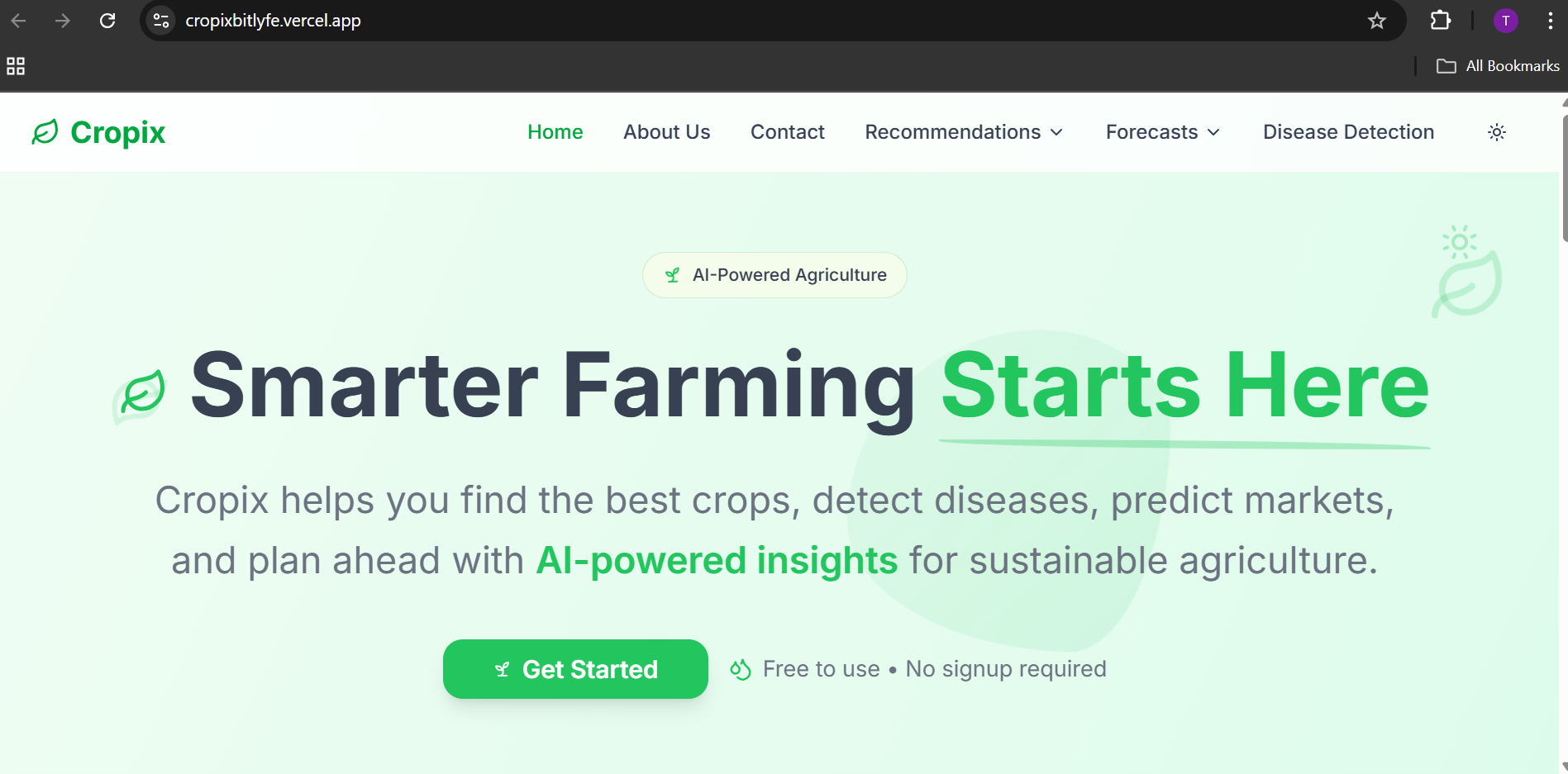 The inspiration behind Cropix stemmed from a deep-seated desire to empower farmers with data-driven insights, especially in regions where traditional farming methods often face unpredictable challenges like climate change and soil degradation. We recognized the immense potential of machine learning and data science to transform agriculture, making it more sustainable, efficient, and profitable. The goal was to create a user-friendly platform that could bridge the gap between complex agricultural data and practical, actionable recommendations for farmers.