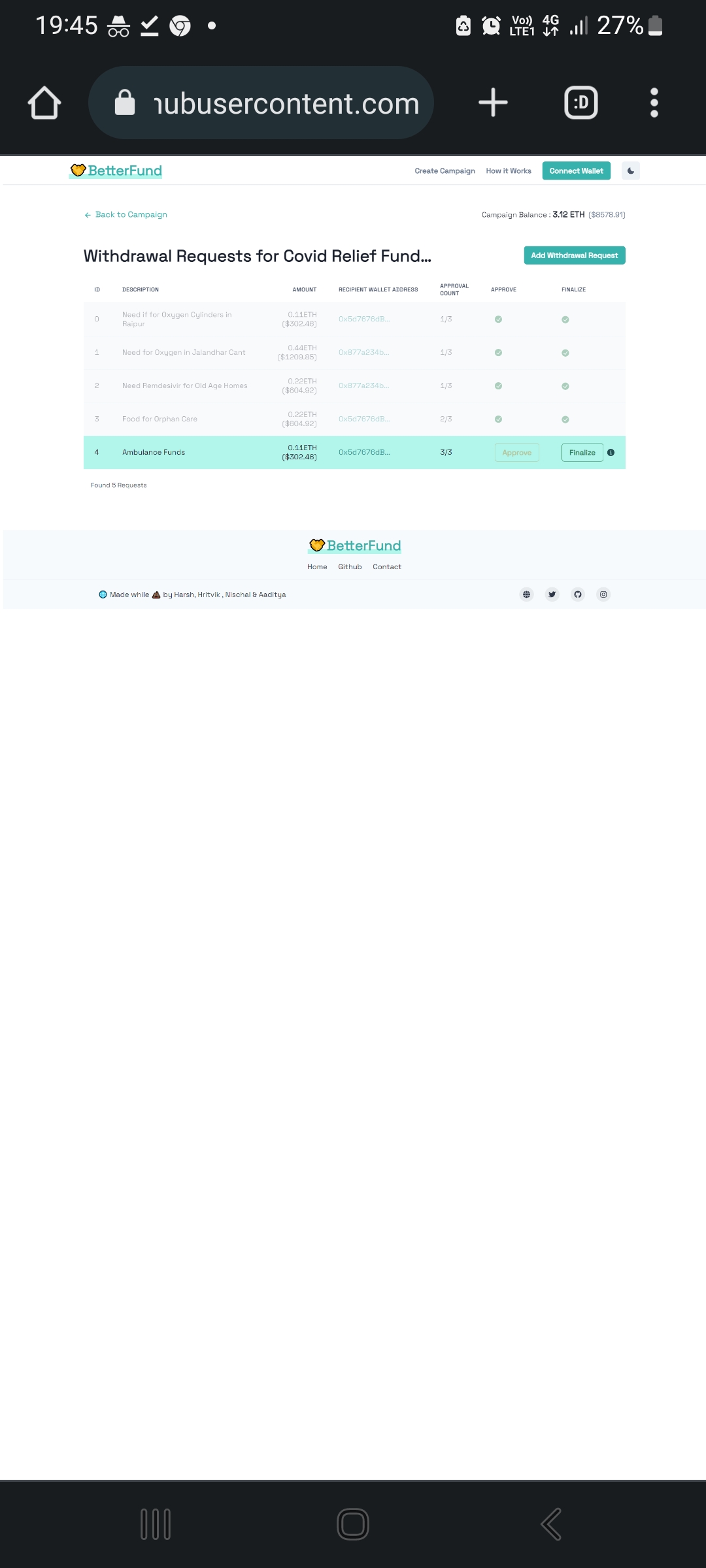 Global contribution : With some of the platforms being country specific, it becomes hard for people from other countries to contribute to various campaigns. Using blockchain anyone in the world can contribute to the campaign. Transactions are quick and convenient.