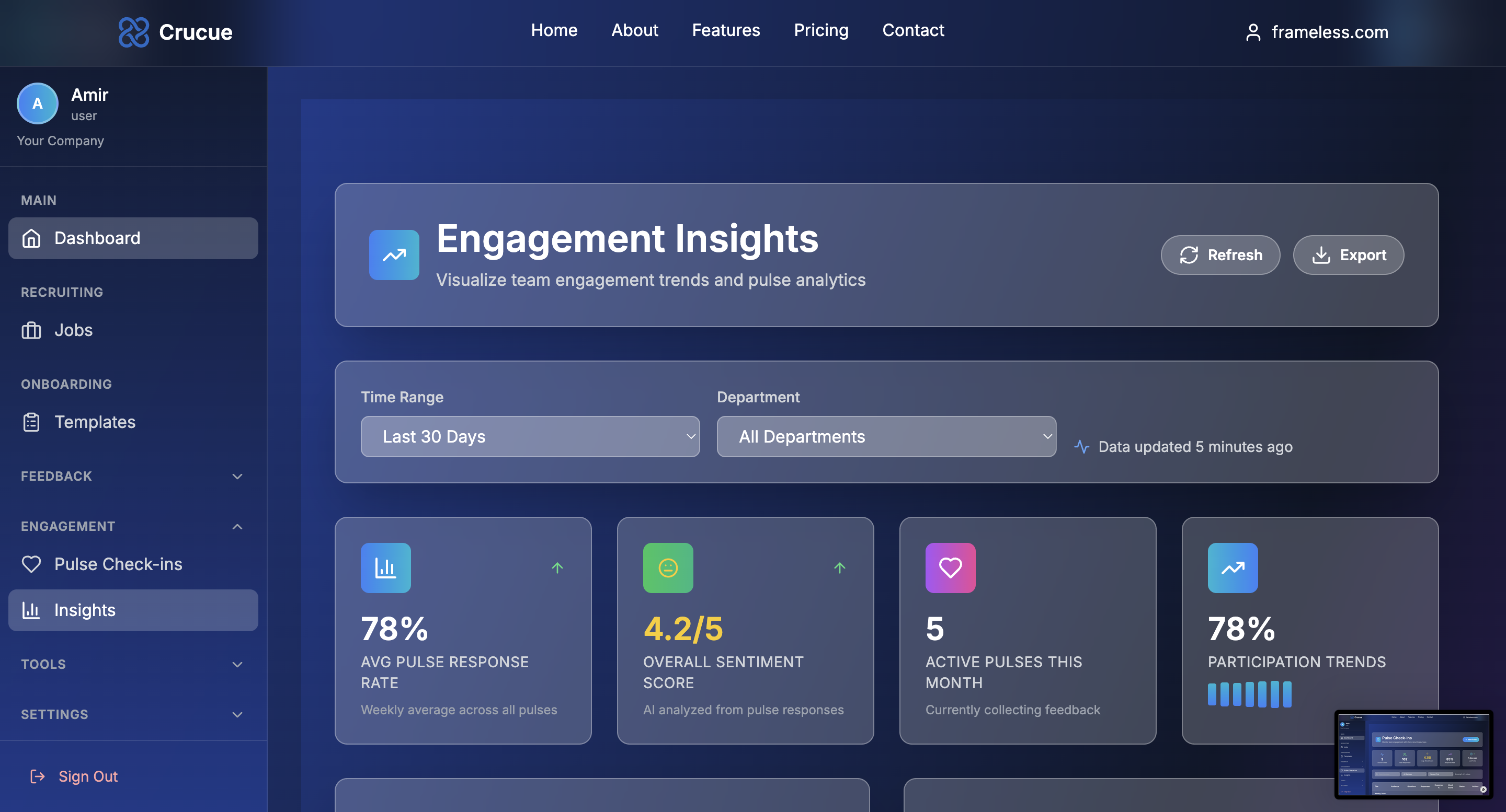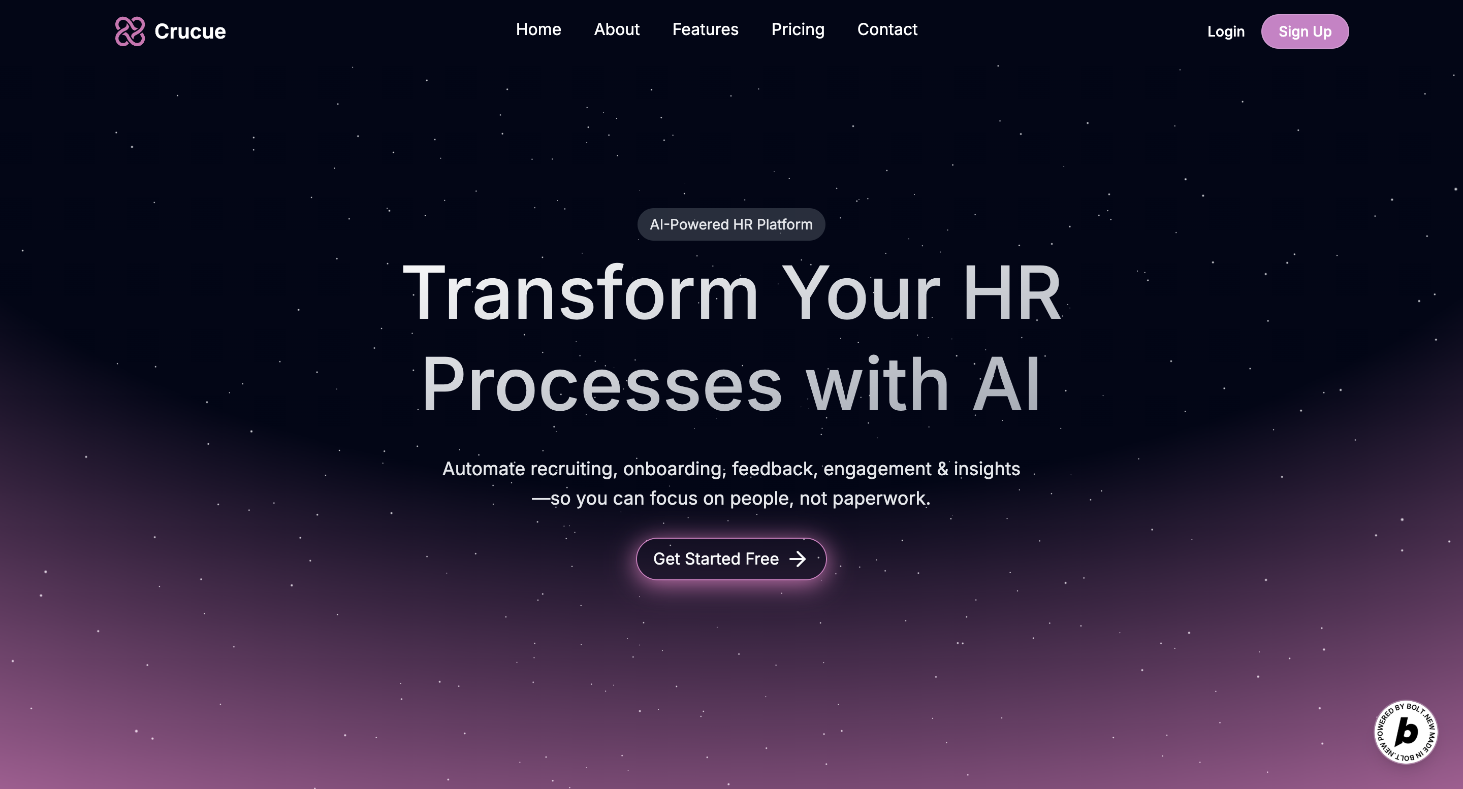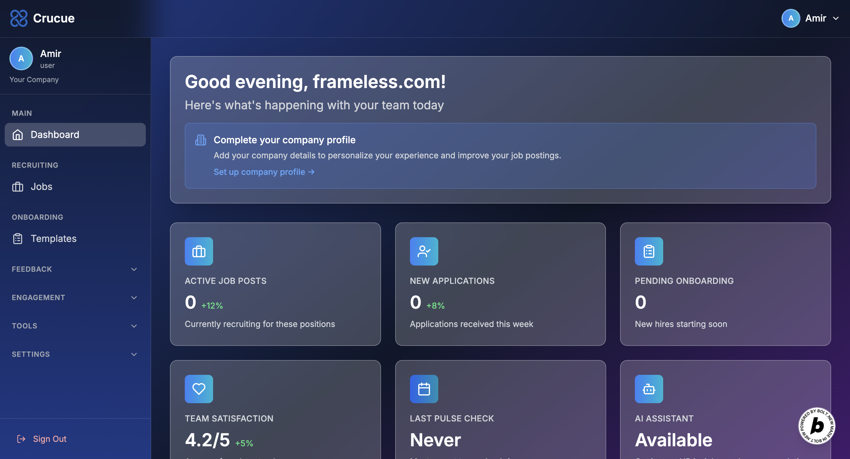 Startups and SMBs often struggle with managing HR tasks efficiently — from hiring to onboarding, to measuring engagement and performance. Most HR tools are bloated, expensive, or require deep setup time. We were inspired to create Crucue, a modern, AI-driven HR platform that empowers small teams to handle people operations seamlessly, without needing a full HR department.