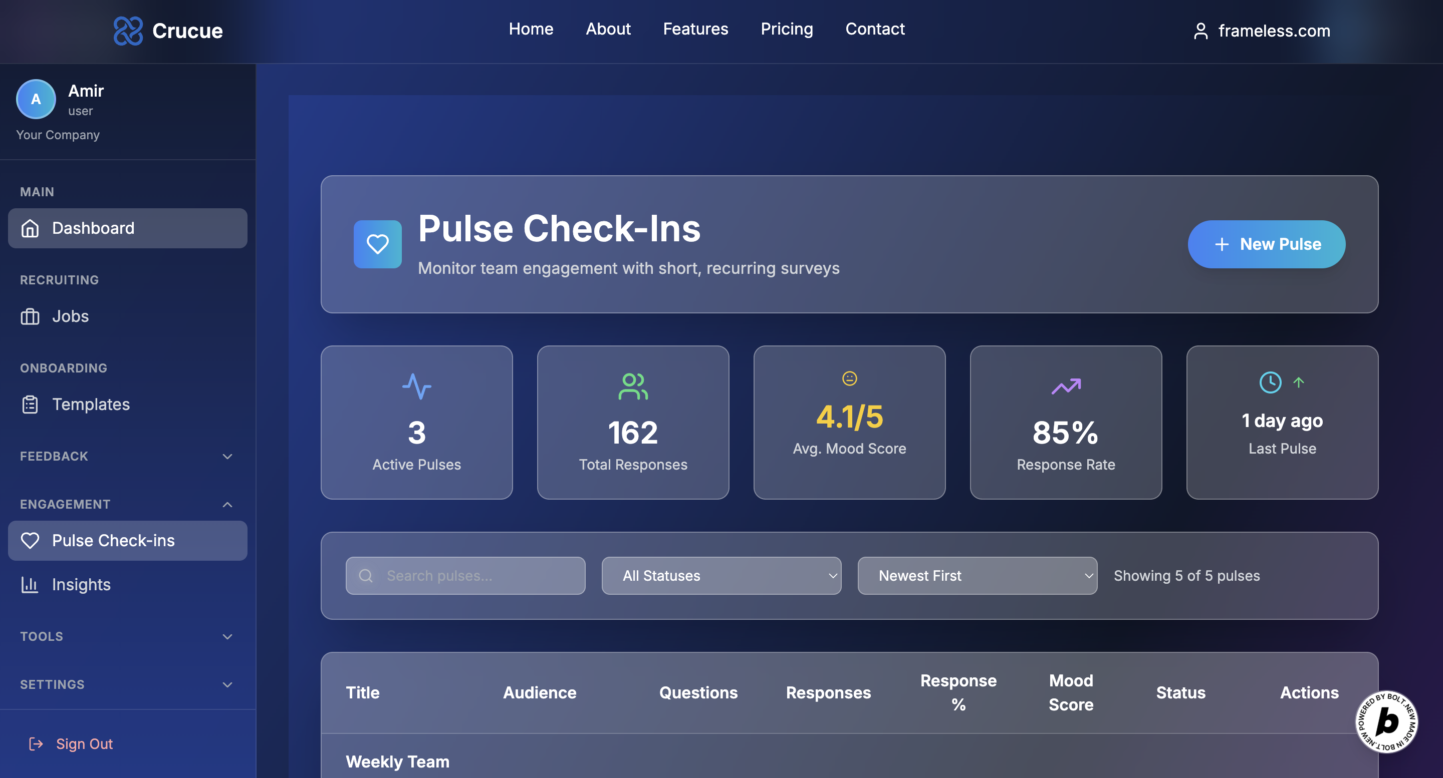 - Measure engagement with pulse check-ins