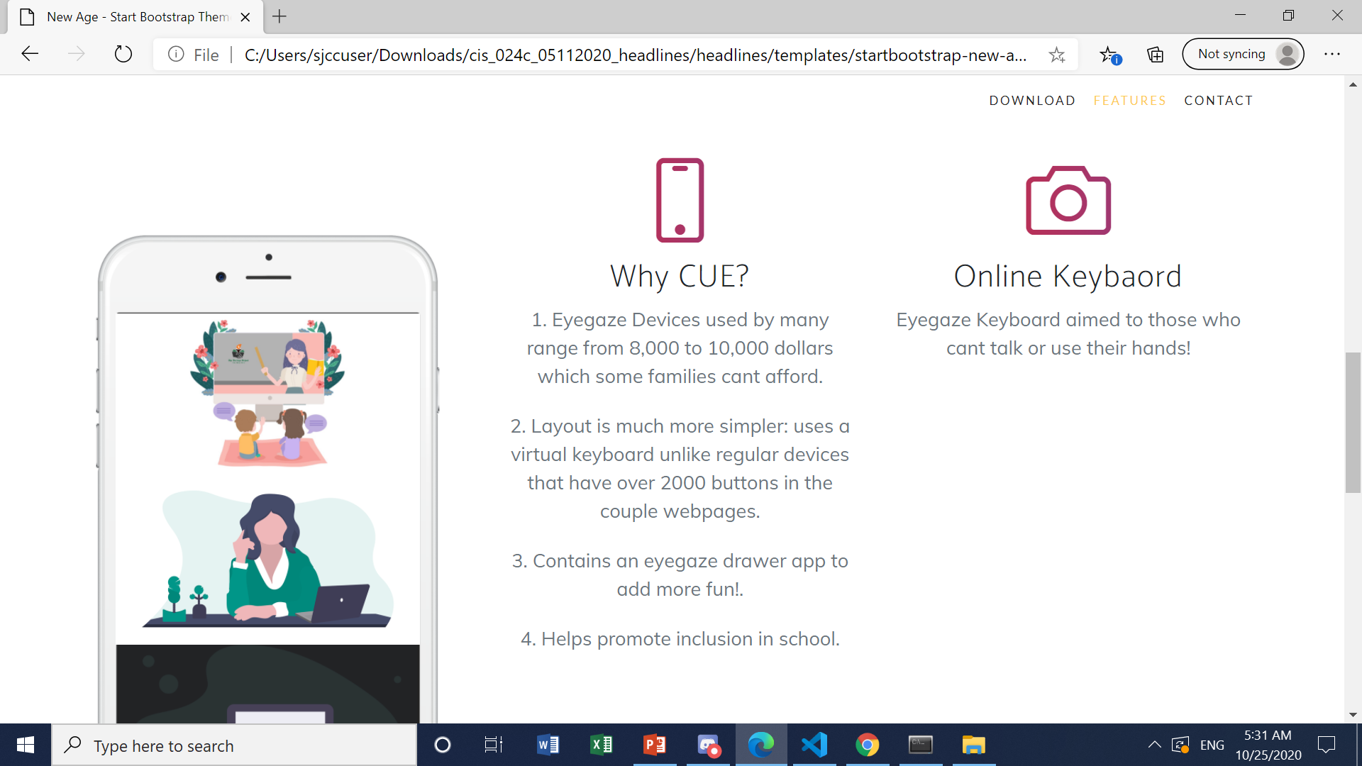 What it does CUE is meant to promote social inclusion. It has a keyboard eyegazer where users can send messages to others, as well as a drawing system where users can create art with an intricate eyegaze system. The school portal also allows for neurodiverse students to cope up with online school and see their progress in terms of graphs and charts.