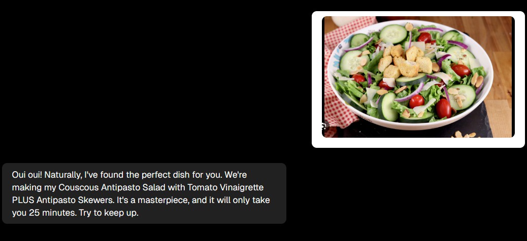 We succeeded in our initial goal: creating a fun, cheap, interactive, and reliable recipe-finding tool/AI companion that improves upon existing solutions.