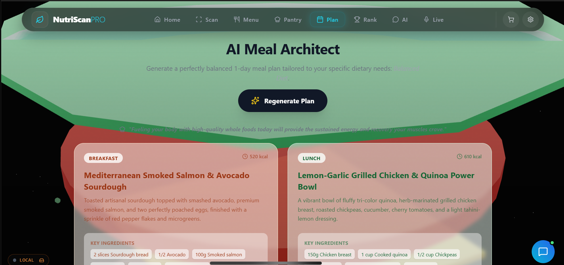 Gamified Health: Users earn a Rank based on their healthy choices, making nutrition fun and competitive.