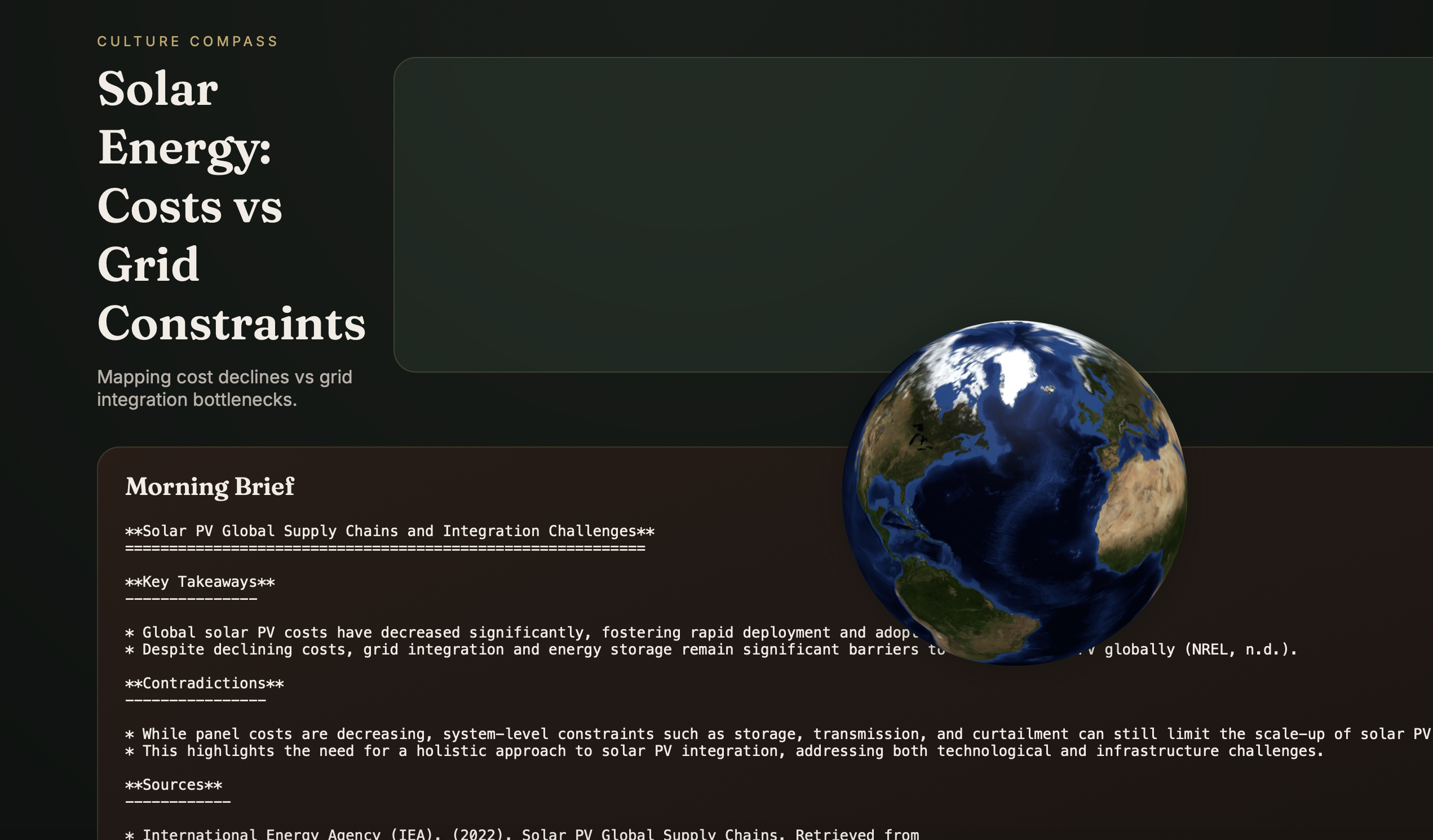 6.-Publish a public report (brief + claim cards + contradiction map + a 3D globe showing geographic diversity)