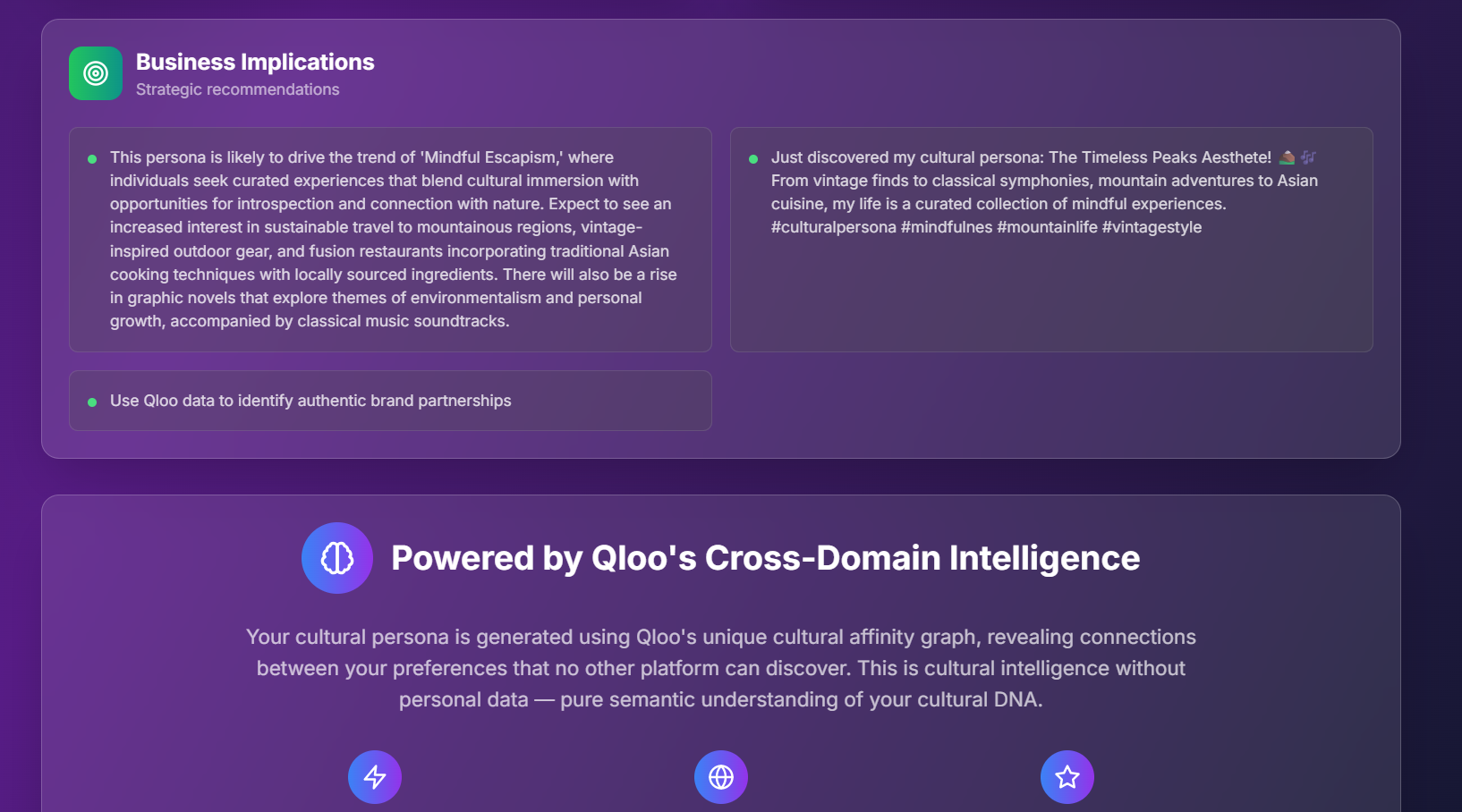 - Successfully integrated Qloo and Gemini to uncover cultural patterns