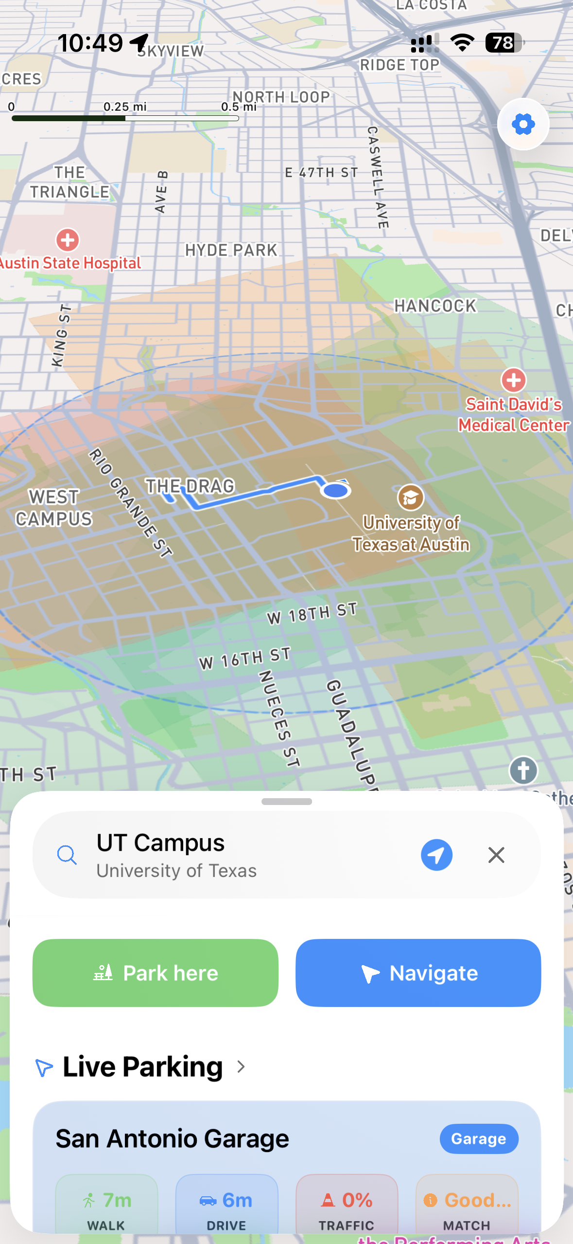 So we built Curby. Curby solves the disconnect between classic navigation and parking. Curby makes predictions based on a deterministic formula with multiple weights from live data on where the most likely parking spots will be. One top of that, it makes geofenced zones with most likley more open areas versus occupied areas from a zoomed out perspective, so you can quicky figure out which way to search while driving.