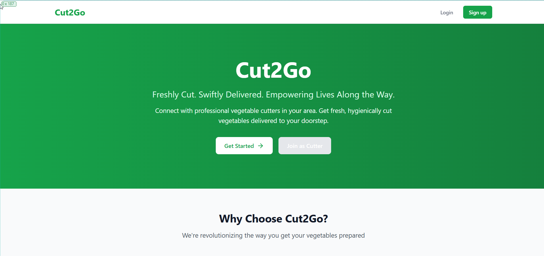 Cut2Go is a web application that connects customers who need pre-cut vegetables with local service providers (housewives, students, and vendors) who offer cutting services. Customers can choose vegetables, cutting styles, and delivery times, while service providers earn by fulfilling these orders from home or local shops.