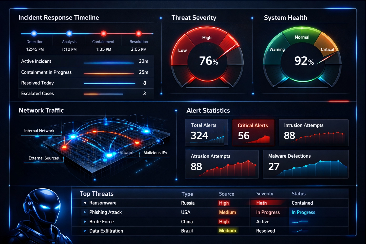- Real-time incident management with multi-severity tracking