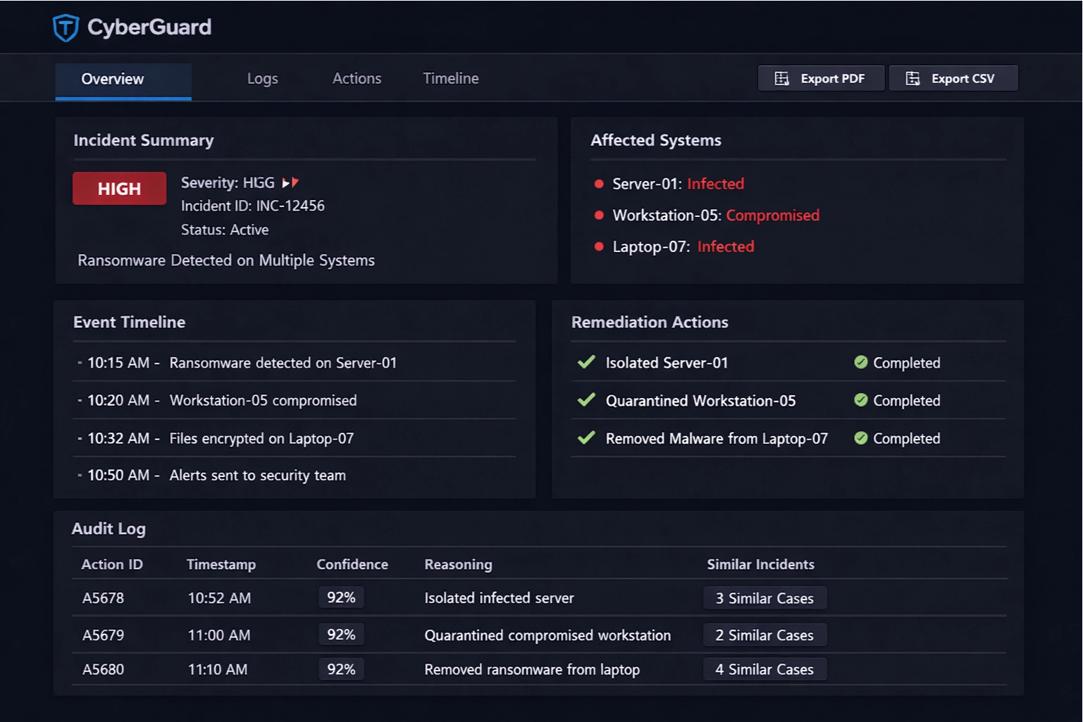 - Automated Remediation - Execute safe, reversible actions based on confidence thresholds