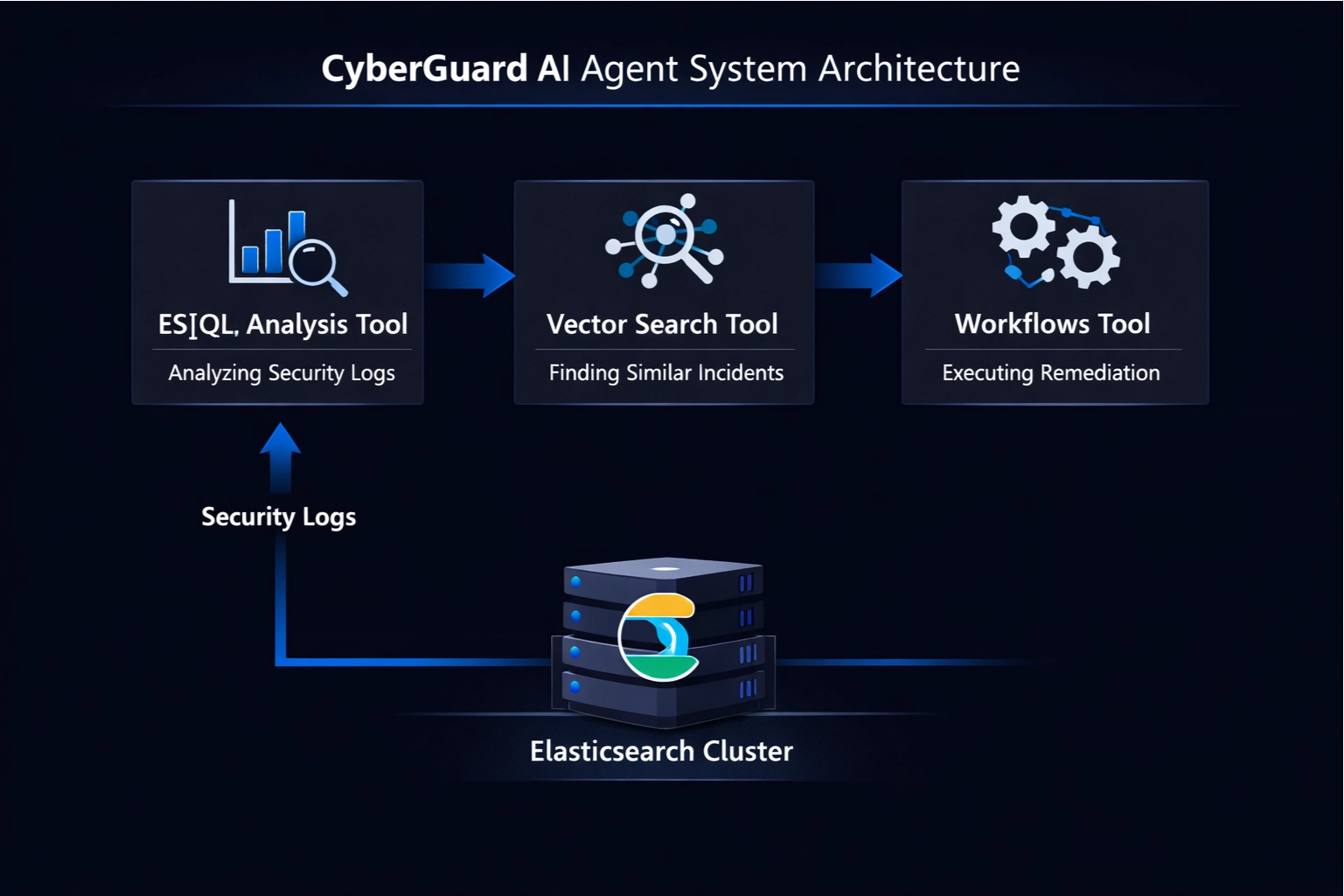 CyberGuard AI Agent is an intelligent, autonomous security incident response system powered by Elasticsearch Agent Builder. It revolutionizes how security operations centers (SOCs) handle alert fatigue by automating the entire incident lifecycle—from detection and analysis to remediation and reporting.