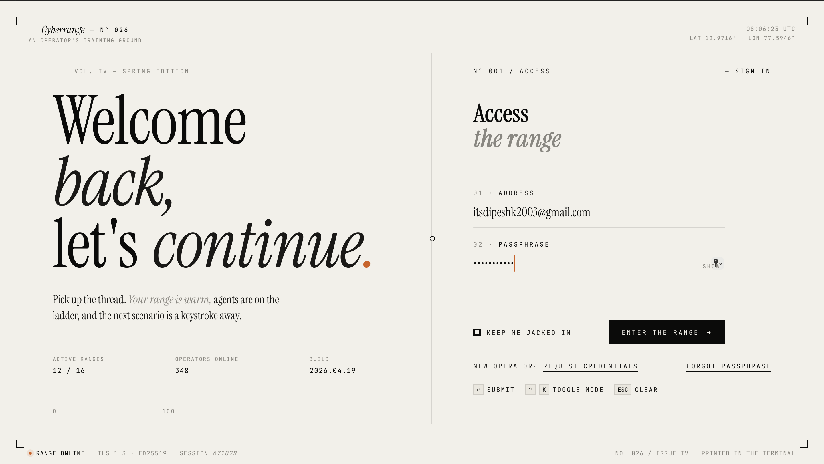 When we wanted to learn cybersecurity, every resource felt the same courses, videos, walkthroughs. All theory, no teeth. Real security skills aren't built by reading; they're built by doing. We met at ISRO's Cybersecurity Division, where one of us was building AI to detect network anomalies and the other was designing training programs for government cyber cells and we both hit the same wall. No tool existed that put people in a real fight and let them learn from it.
