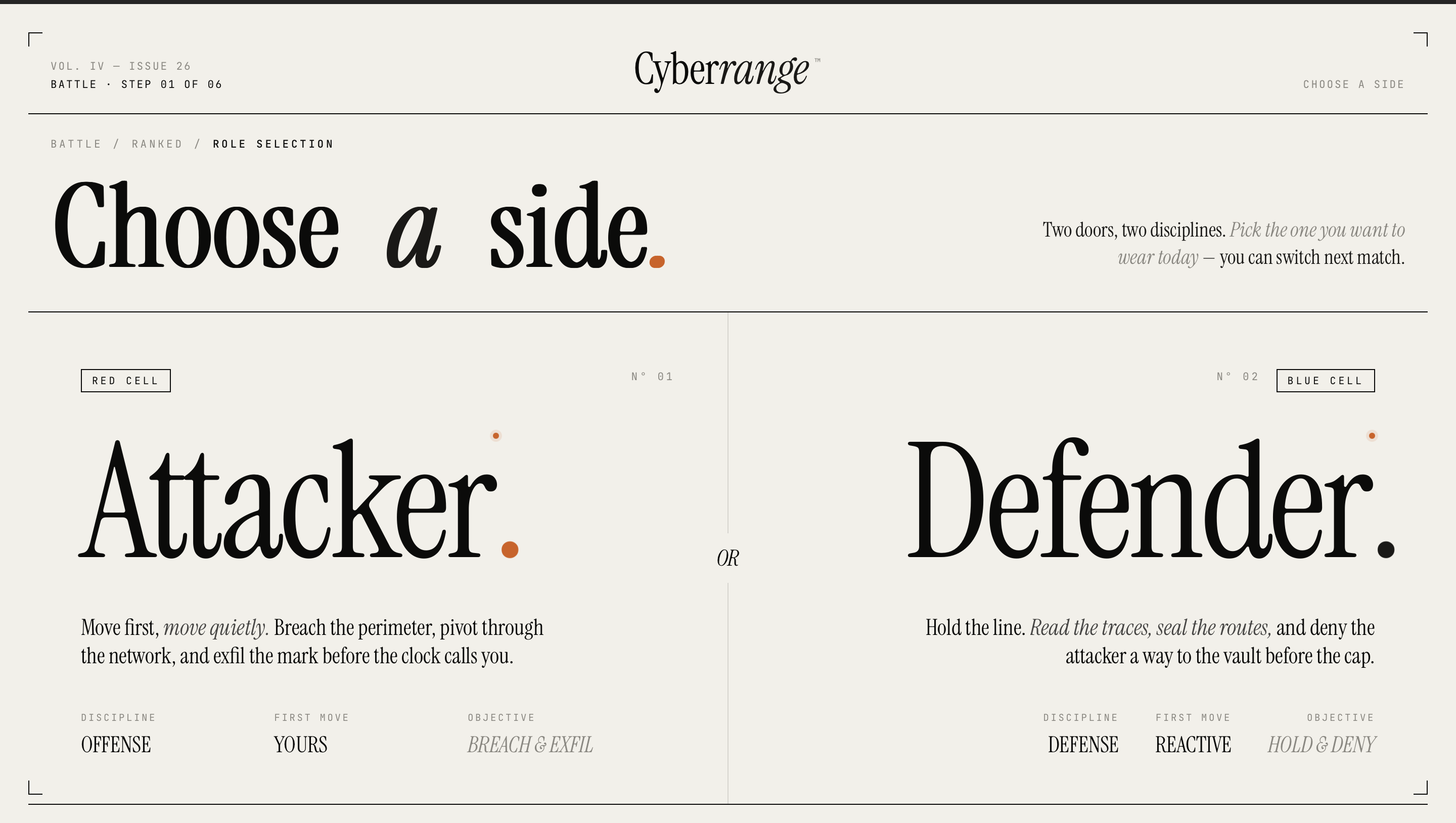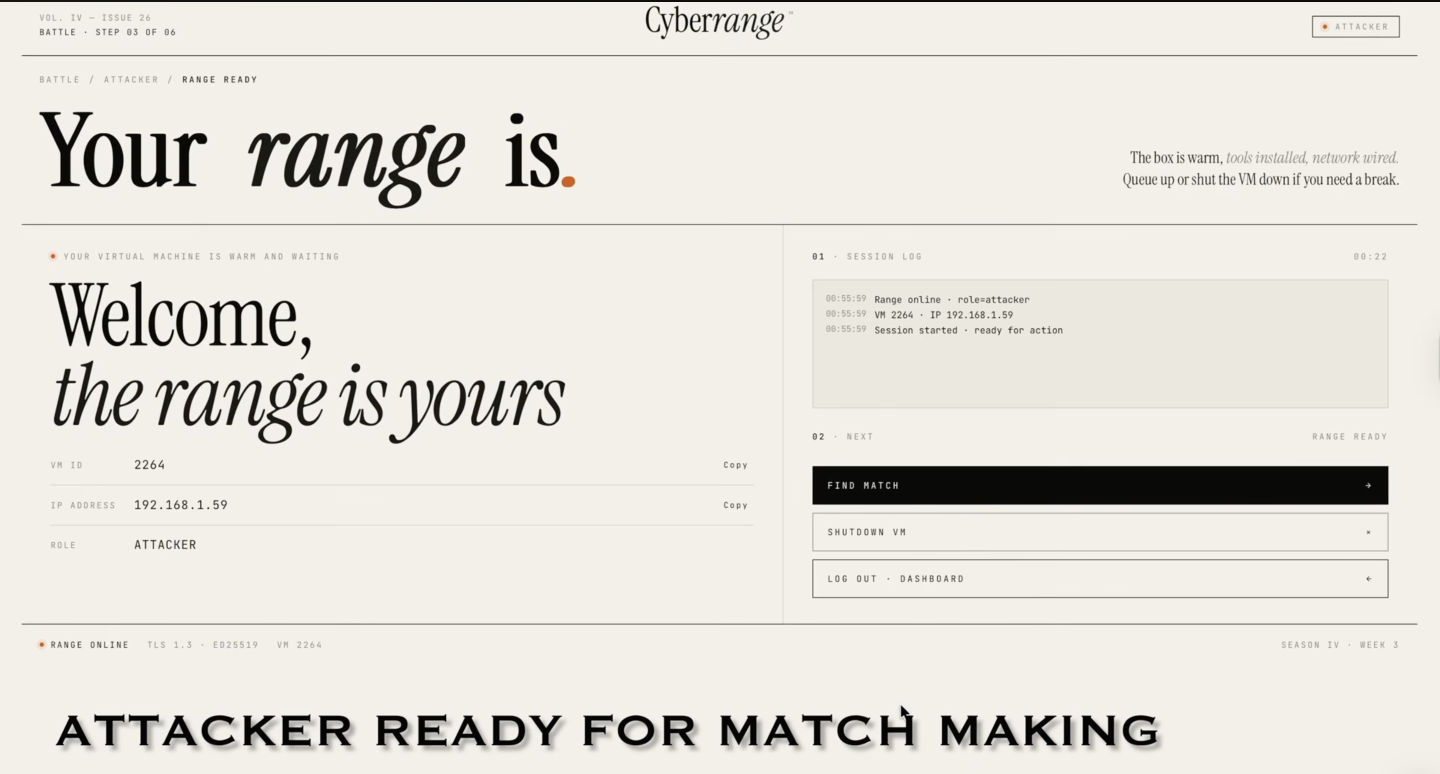 Cyber Range pairs a live attacker and a live defender, spins up a virtual machine accessible directly in the browser, and lets them go at each other in real time. No guided steps. No hints. Every move is captured as training data for our AI layer, building a dataset of authentic human decision-making under adversarial pressure that no synthetic source can replicate.