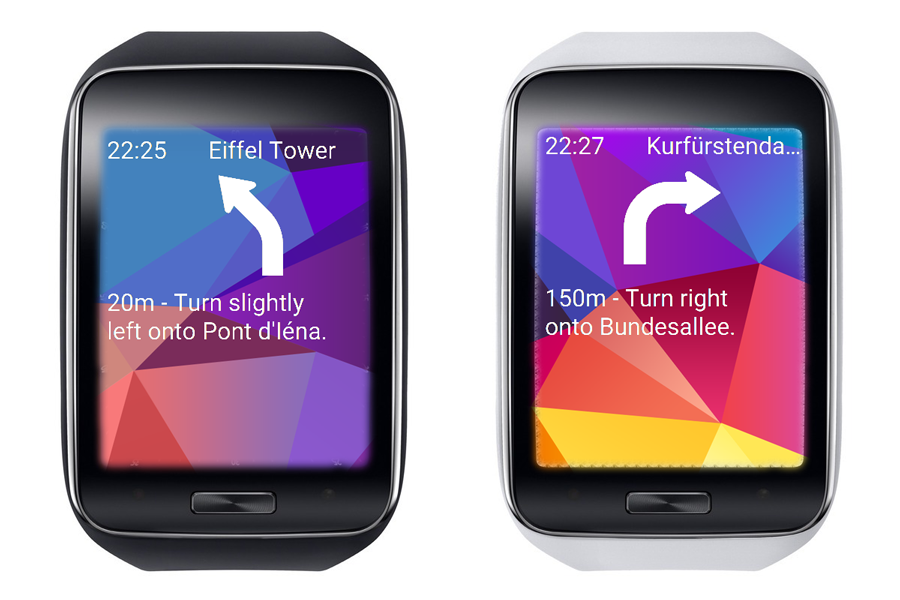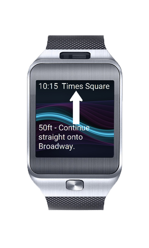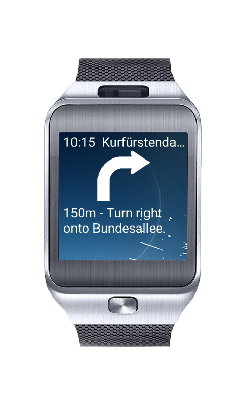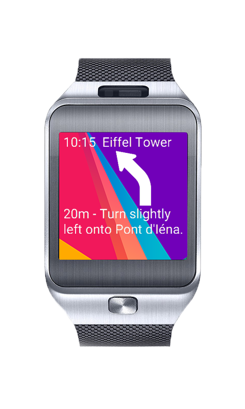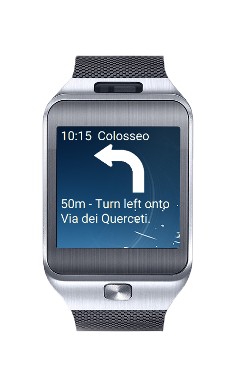 D.M.A. Navi Watch is free clock face for Samsung Gear integrated with Google Navigation.