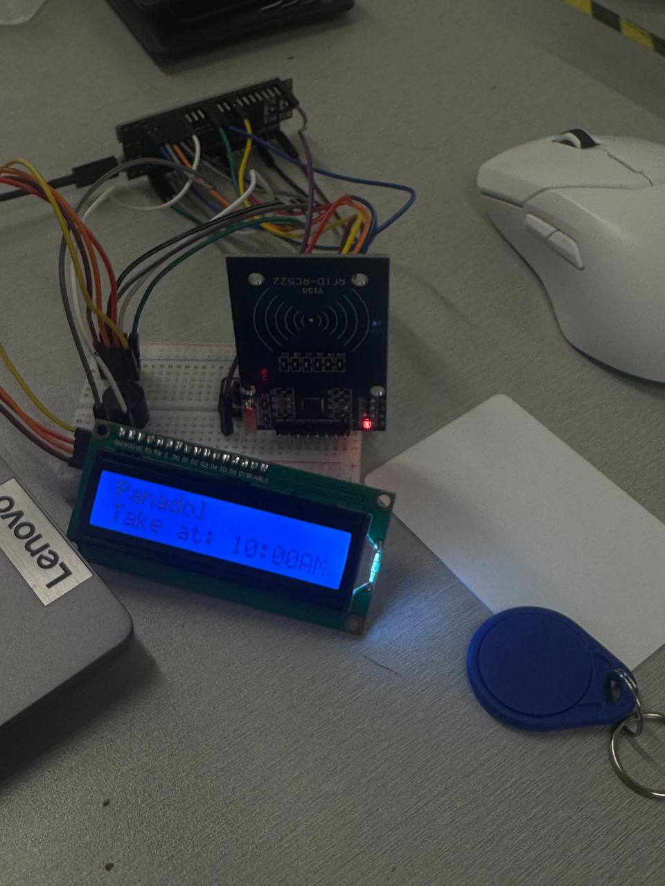 Physical prototype: we mainly used a few components to build this, the esp32s3, RFID RC522, LCD screen, breadboard, and jumper wire. Initially, we wanted to create a mini robot that could move to each of the patients' beds, identify through the RFID tag and dispense their medication based on the dictionary we created to store the data. However, due to time constraints and us not being able to obtain a motor for the robot to move we decided to change it to a simpler prototype that only scans the RFID and dispenses the medication, we added some modification that allows our prototype to be versatile and can be implemented to both a vending machine or a robot that has mapped the entire hospital layout that only require some small changes for it to work.