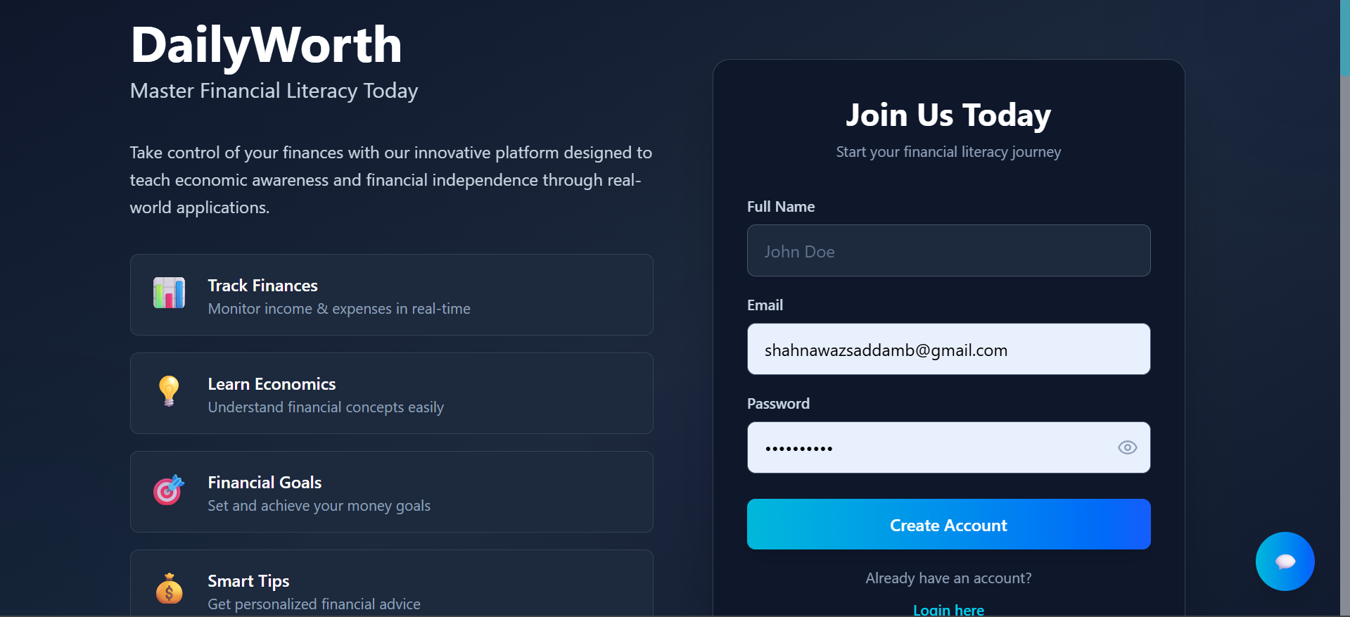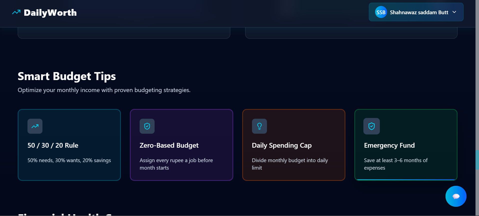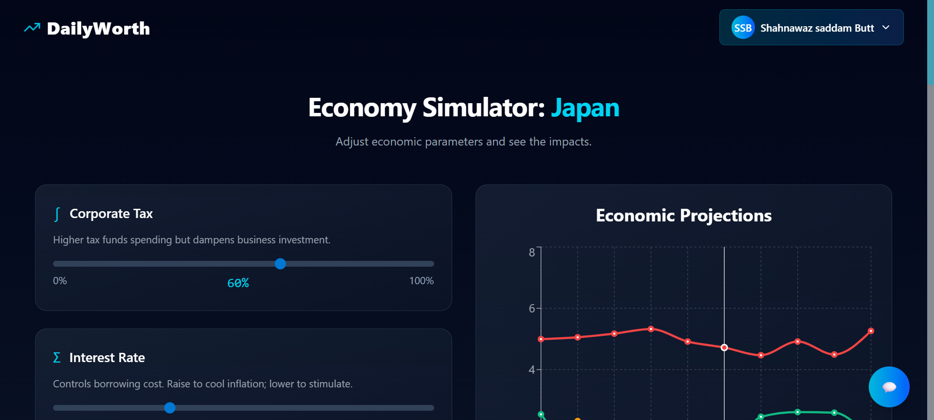 DailyWorth is an interactive financial literacy platform that combines real-world tools with simulation-based learning.