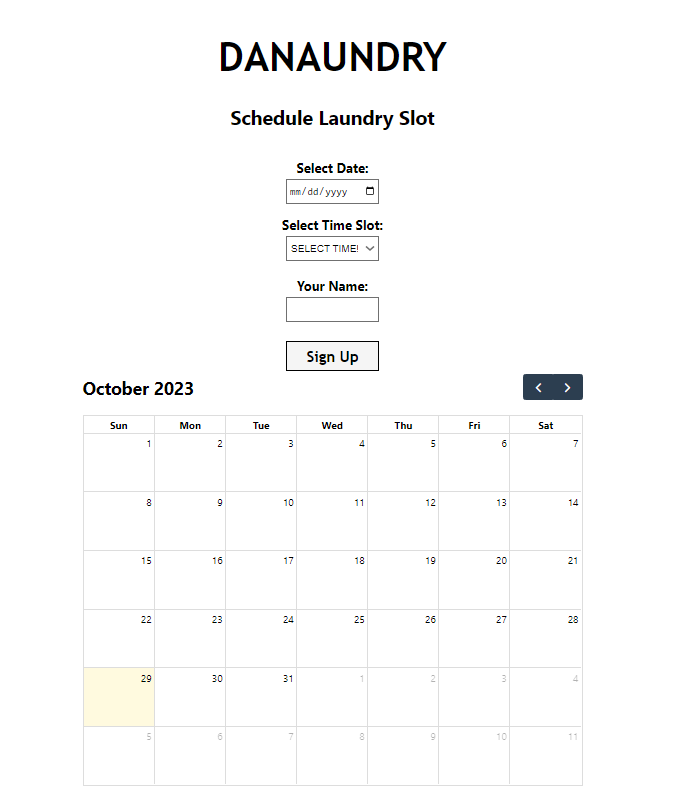 You can input the date and time of your desired laundry-doing and enter your name, and it pops up on the website calendar for everyone to see