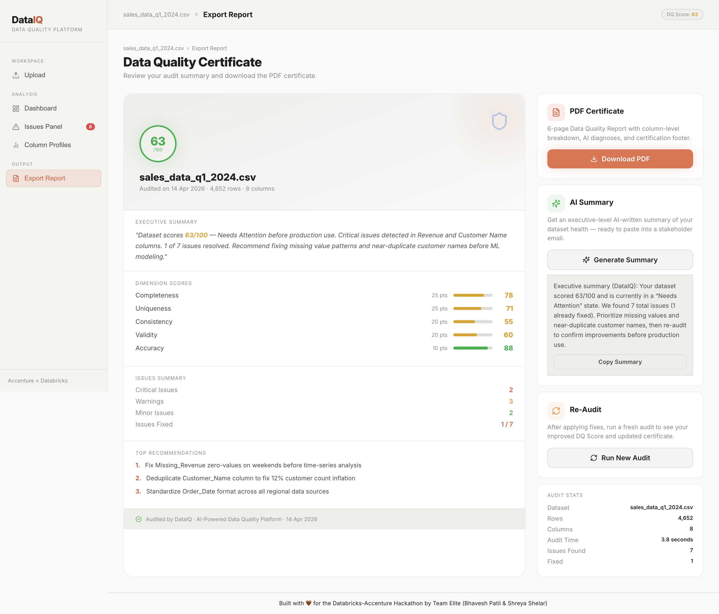 | 🧾 Export Report | Generate a professional data quality certificate |