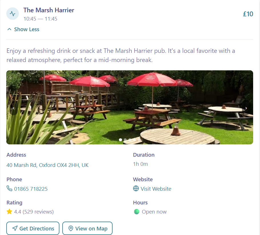 - Deep use of Place Details, Directions, and Maps URLs APIs to ensure itinerary stops are relevant, reachable, and interactive