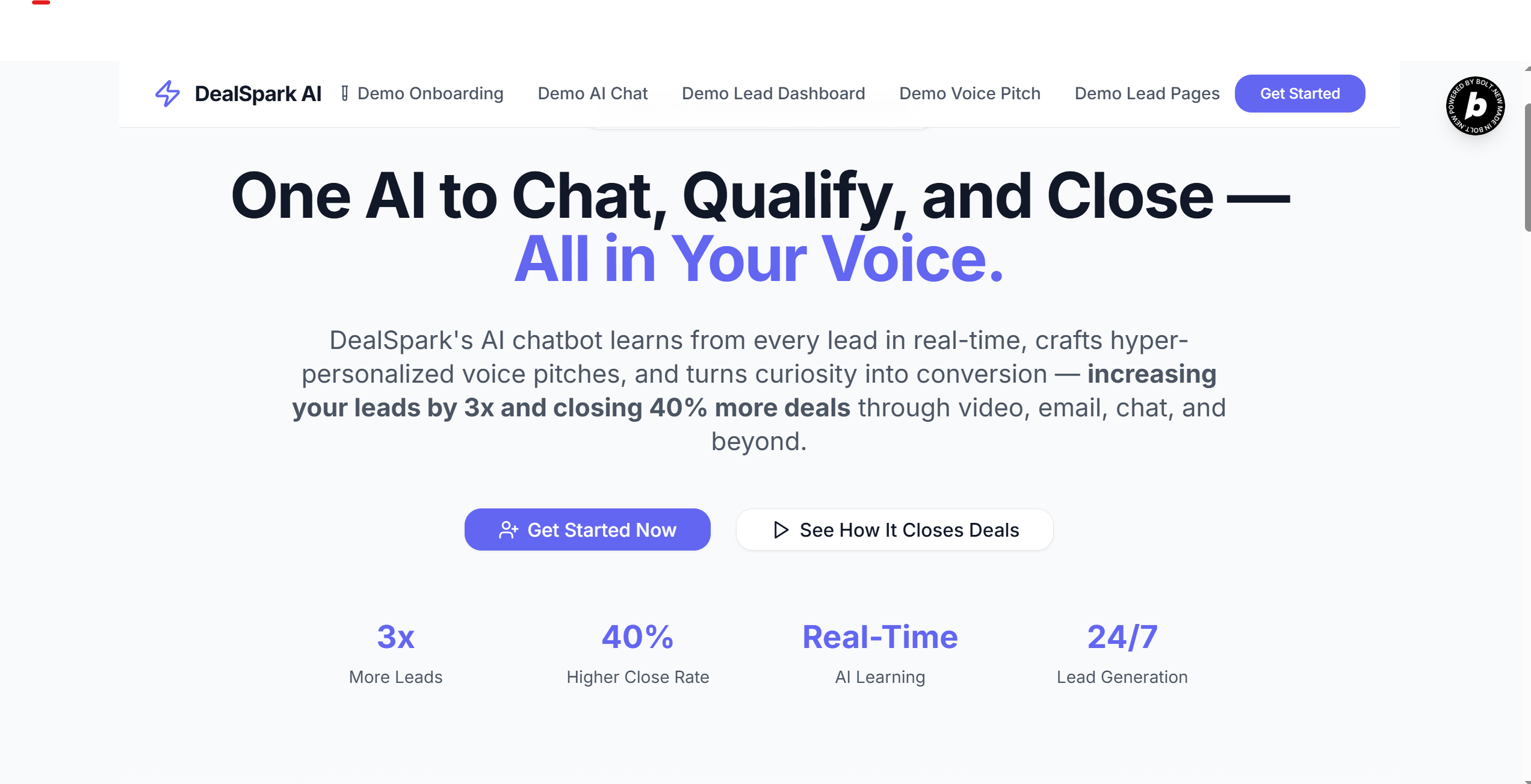 DealSpark AI is a multi-channel AI sales assistant that: