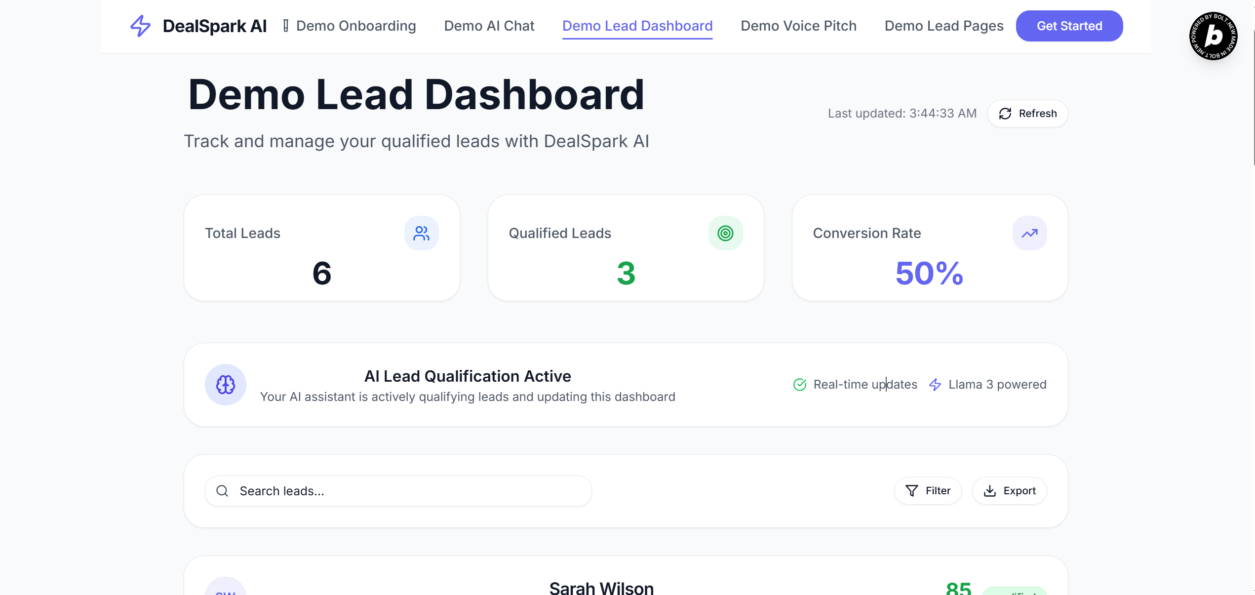 - 🧠 Groq + Llama 3 for real-time sales pitch and chatbot intelligence