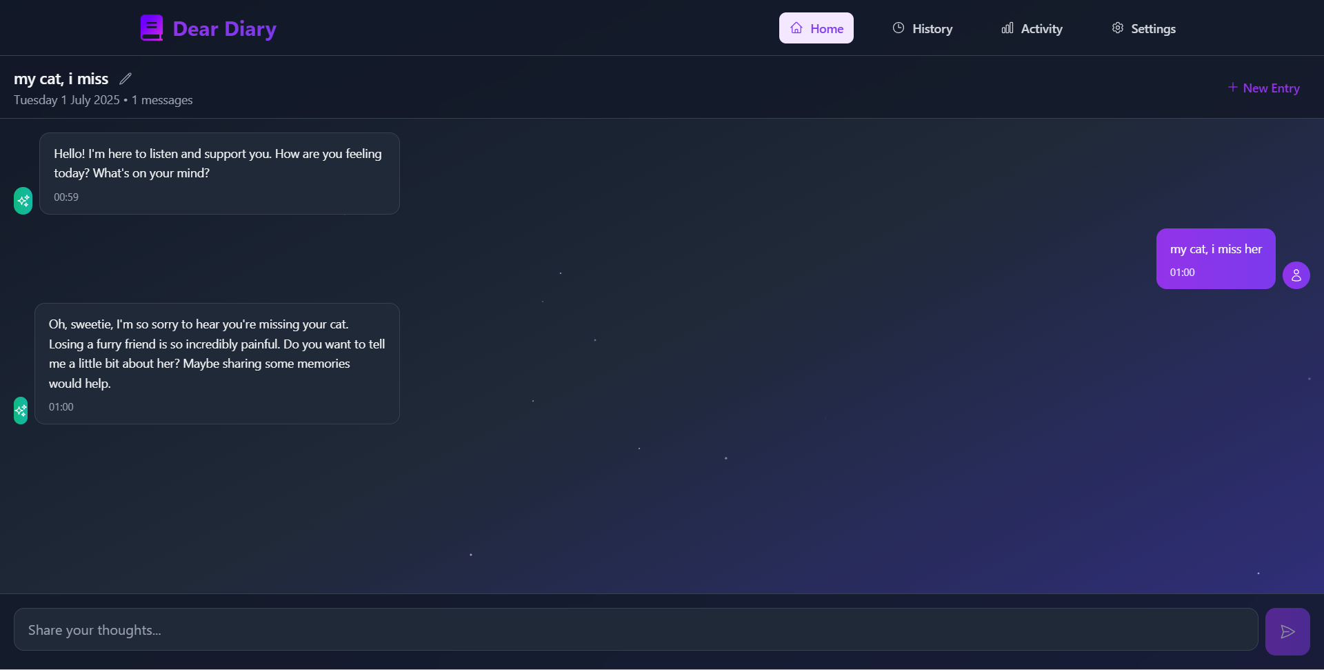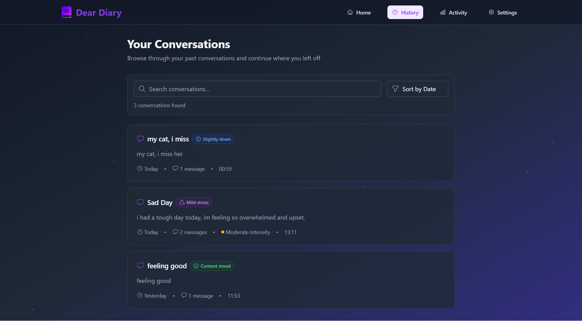 In a world that often feels overwhelming, we recognized the profound need for a personal, private space where individuals can freely express their thoughts and emotions without judgment. The inspiration for Dear Diary stemmed from the desire to create more than just a digital notebook; we envisioned a compassionate companion that could genuinely listen, understand, and offer support.