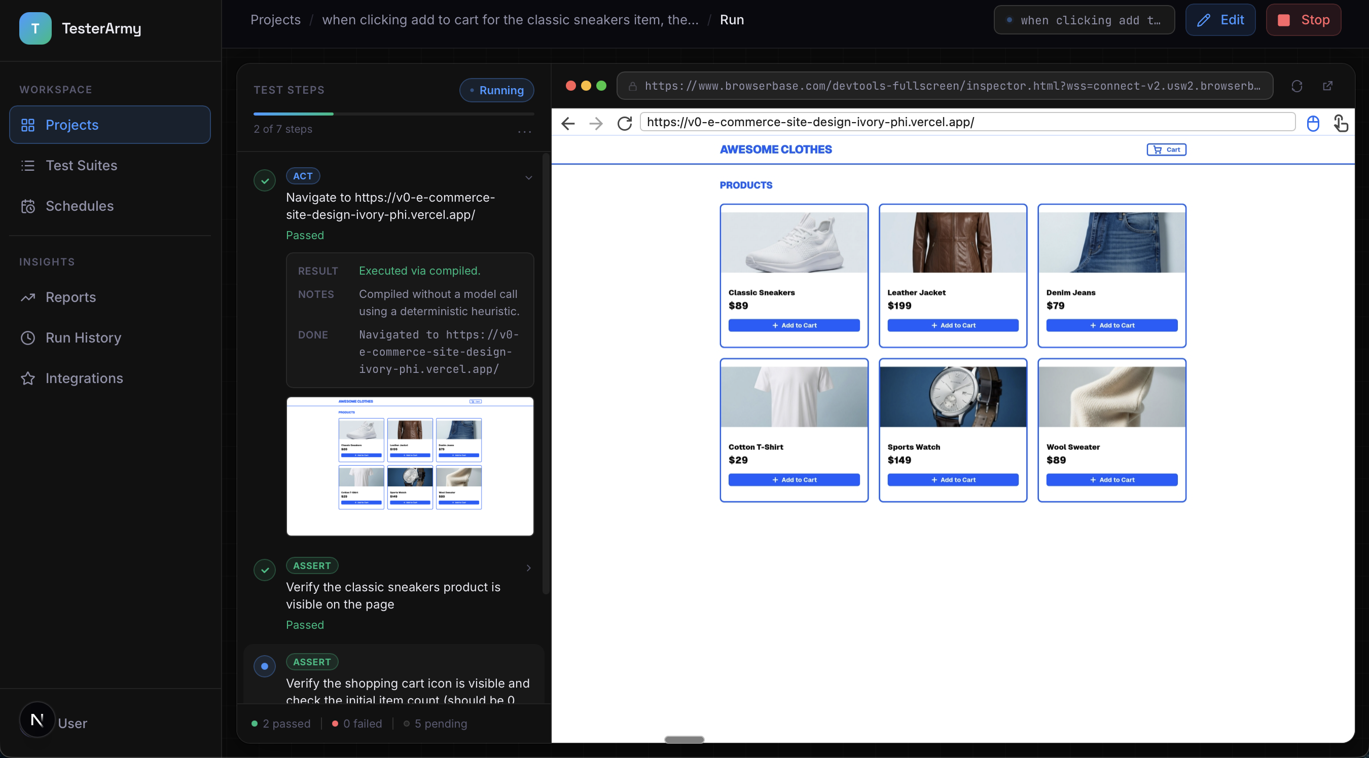 DeepCrawl is a product that gives coding agents a dedicated platform to test and verify expected client side behaviors. The platform supports a cloud hosted browser instance for end to end customer workflow testing. Our product approaches using browser agents to verify workflows through deterministic actions, assertions, and conditionals inspired by unit-tests to verify atomic features in client components.
