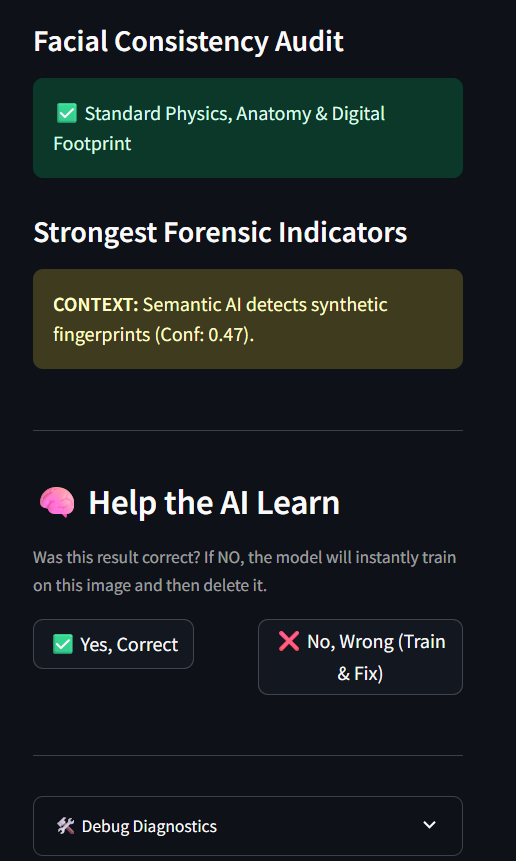 The rise of synthetic media and deepfakes poses serious risks to trust, security, and authenticity online. Existing detectors often act as "black boxes," failing to explain their decisions or adapt to new manipulation techniques. This project was inspired by the need for: