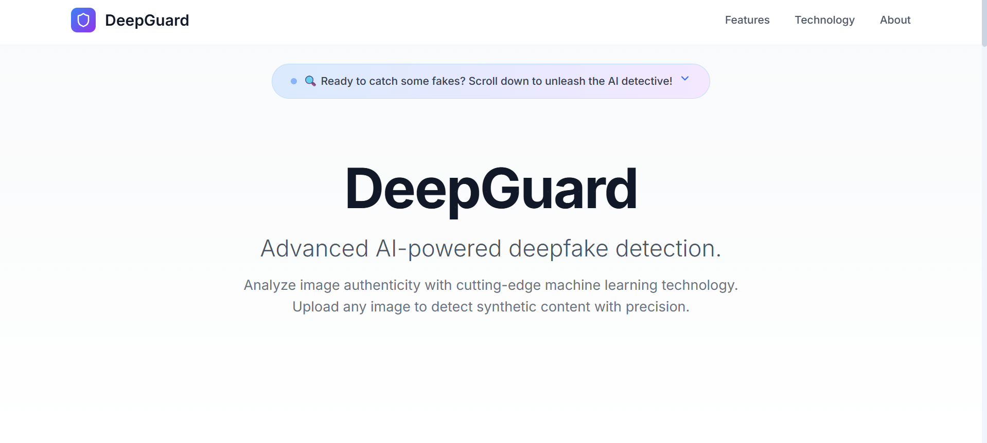 DeepGuard is your digital lie detector for images. Upload a pic, and our AI detective gets to work. Within seconds, it tells you if you're looking at the real deal or a cleverly disguised fake. Think of it as your personal BS filter for photos – no more second-guessing!