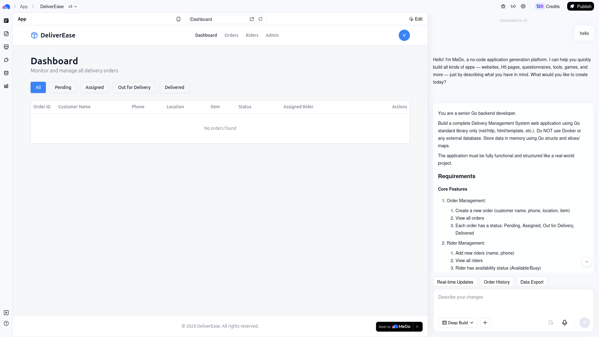 This project really showed me how powerful AI tools like MeDo can be. What would normally take a lot of setup and coding can now be built much faster, as long as you know how to clearly describe what you want. DeliverEase is a simple project, but it solves a real problem and that’s what makes it meaningful.