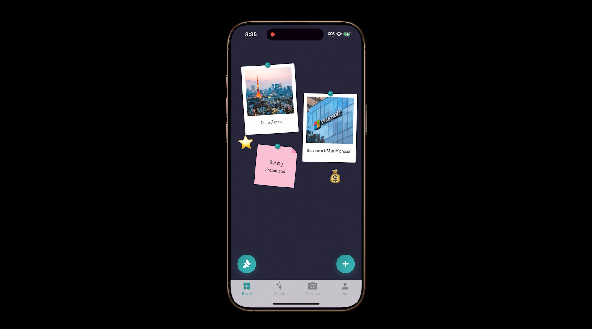 Every vision board app stops at "look at your pretty pictures." Every goal app starts at "here's a checklist." Nobody bridges the two. The insight that the gap itself is the product — that the bridge between dreaming and doing is where all the value lives — shaped every feature we built.