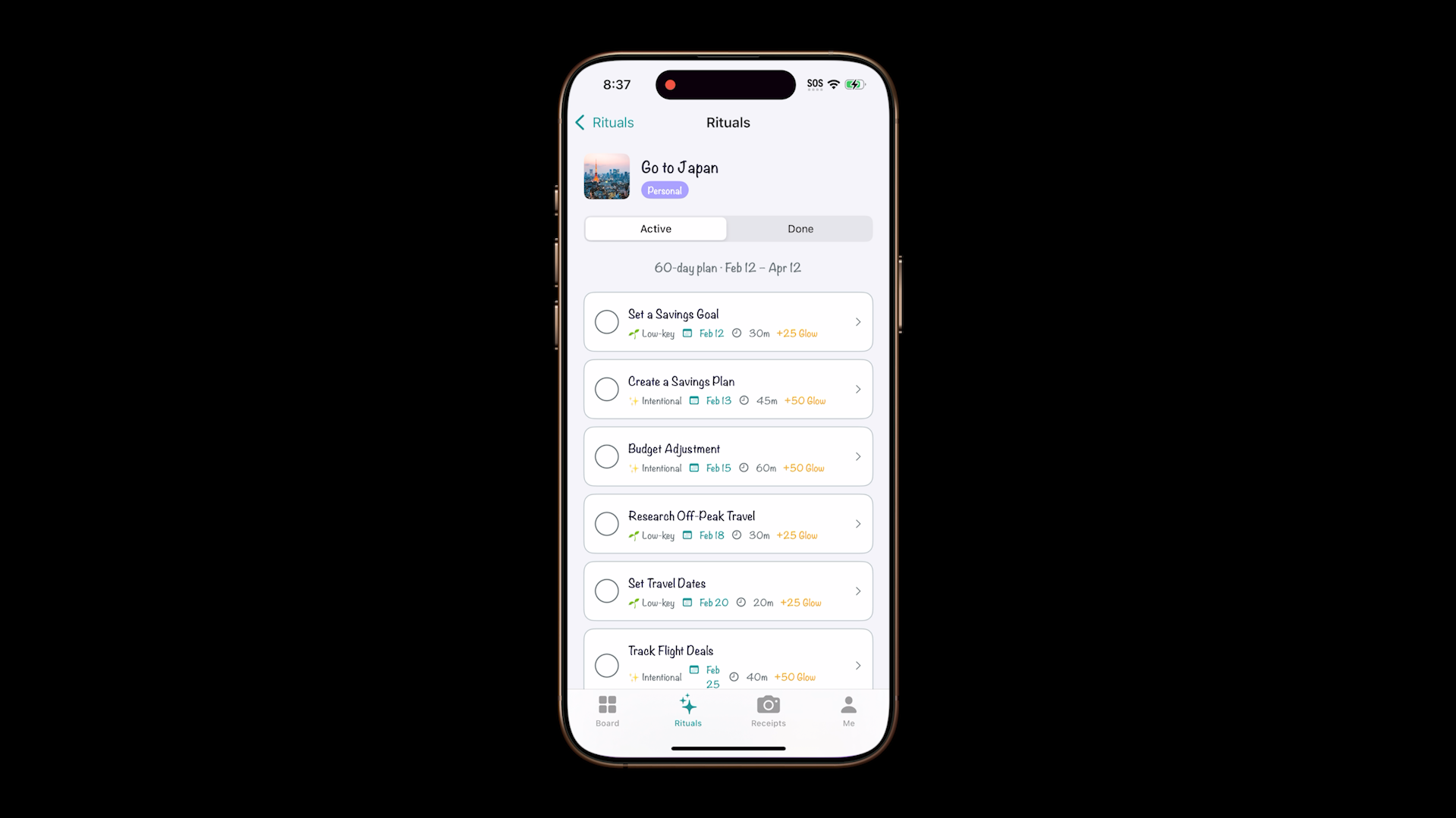 Our AI turns big goals into actionable, daily micro-quests called rituals.