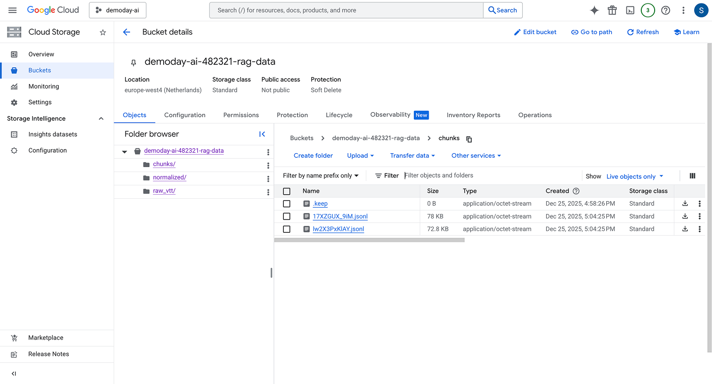 - Audio, decks, transcripts stored in Google Cloud Storage
