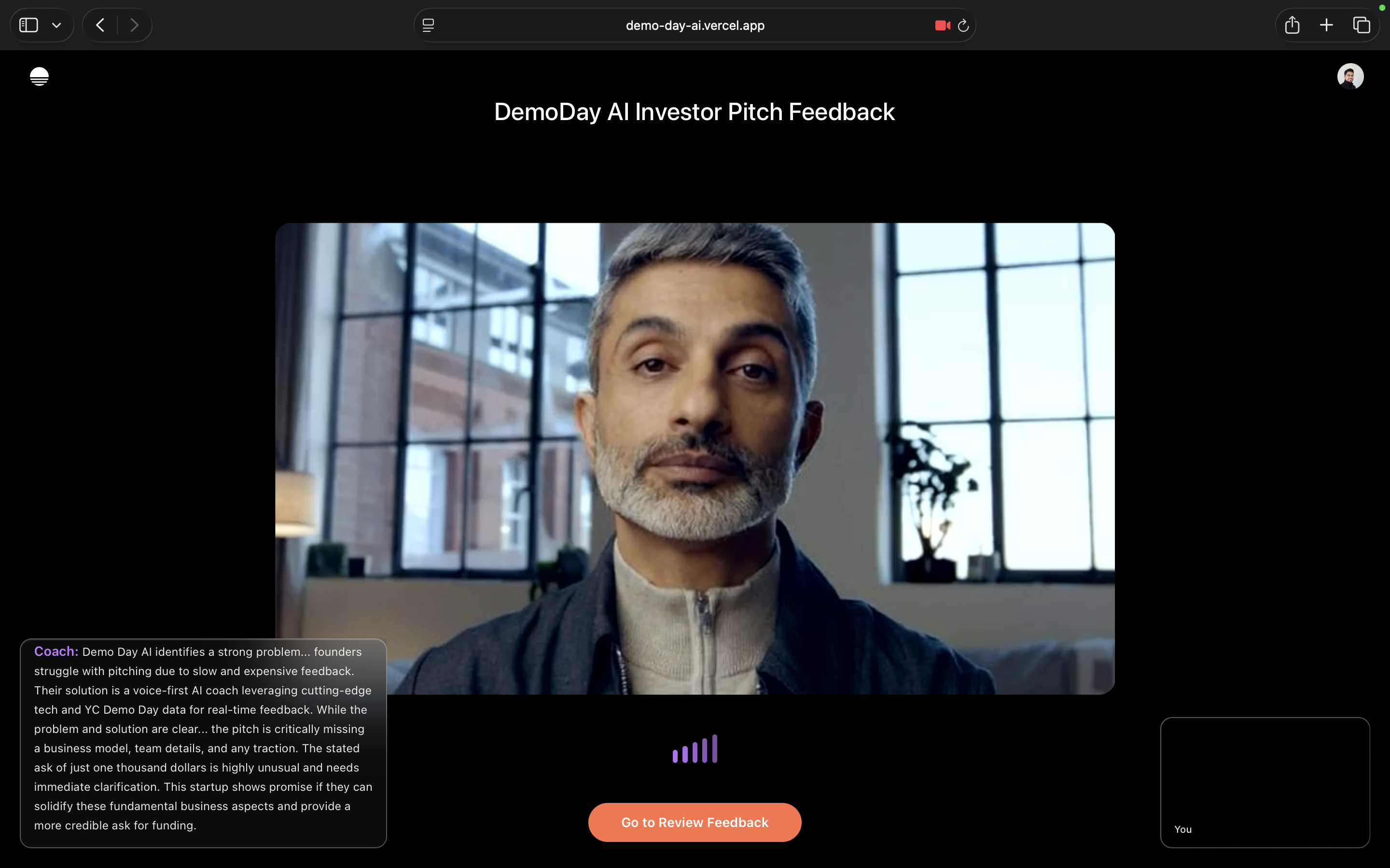 At this point, the founder is done speaking and feedback is generated.