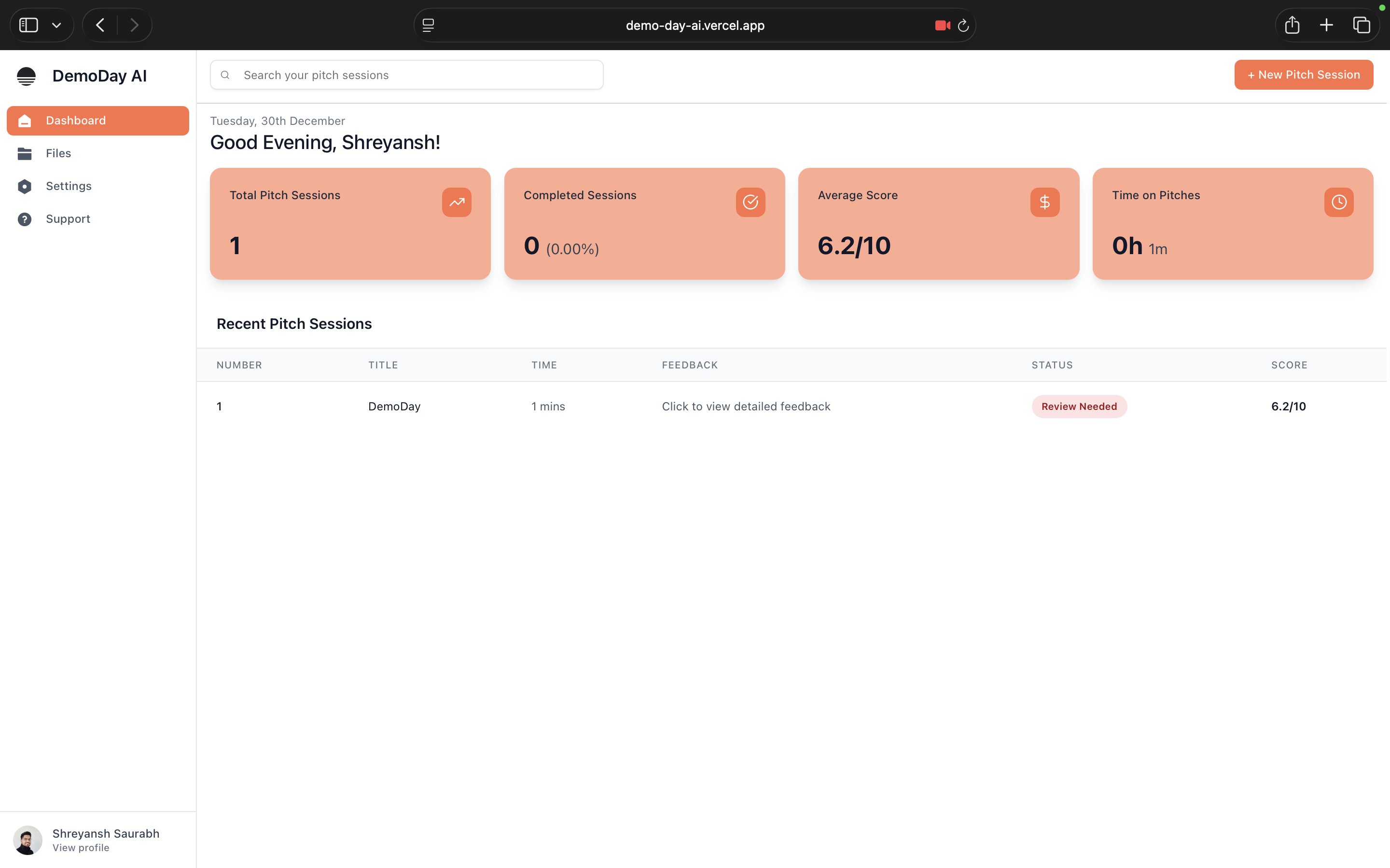 Unlike expensive coaches, biased friends or slow feedback loops, DemoDay AI is built for rapid iteration: pitch → pressure test → feedback → rewrite → repeat. It evaluates whether an investor can repeat your company in one sentence, whether the narrative flows, what would block a partner from leaning in and exactly what to fix before the next meeting.
