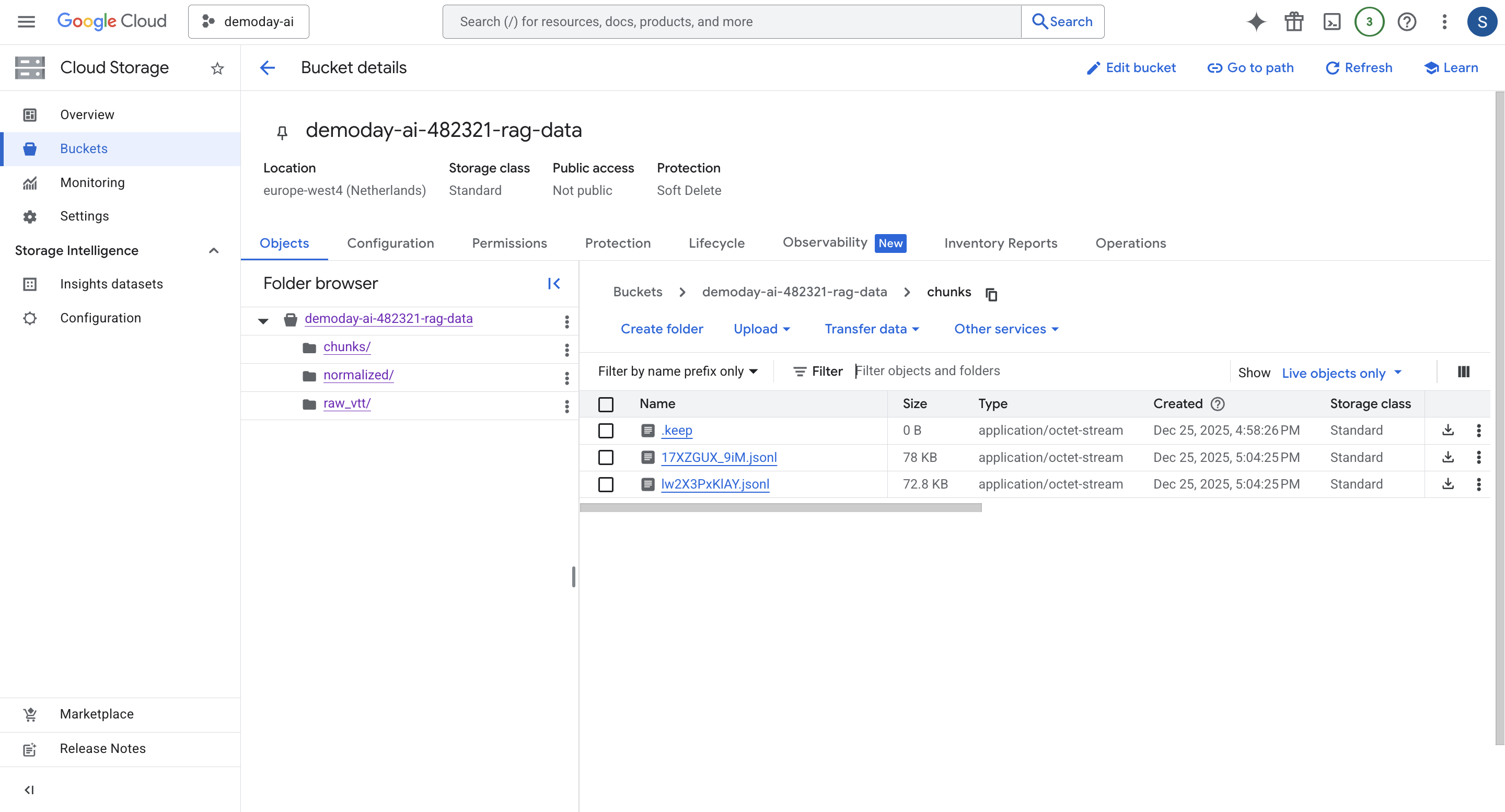 - Each chunk is embedded using Vertex text embeddings