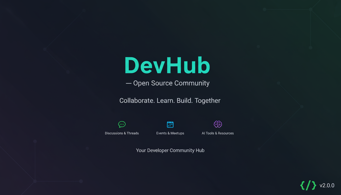 As developers, we noticed that existing community platforms either feel too corporate (Slack, Discord) or too scattered (Reddit, Twitter). We wanted a space that feels like it was built by devs, for devs — with Git-inspired language, monospace aesthetics, and tools we actually use baked right in. The idea was simple: what if a developer forum had an AI assistant, event coordination, and resource sharing all in one place?