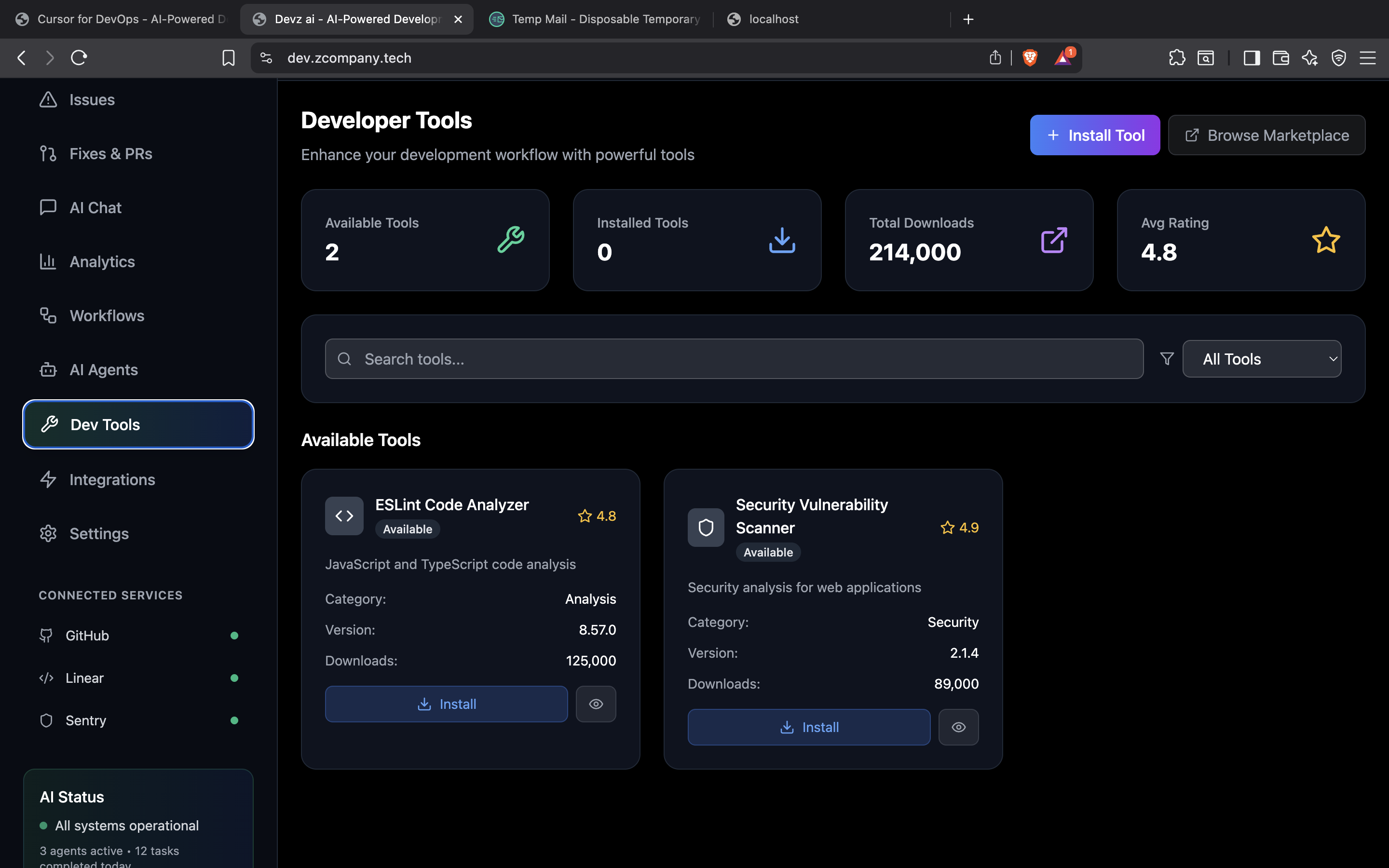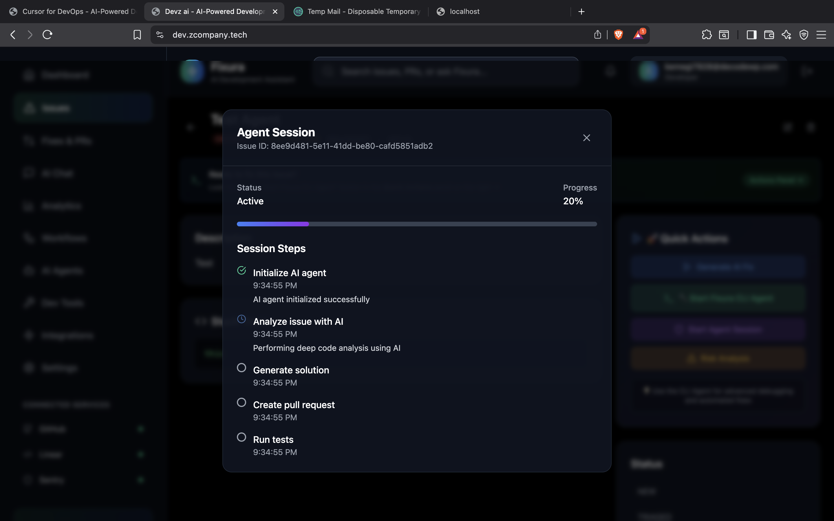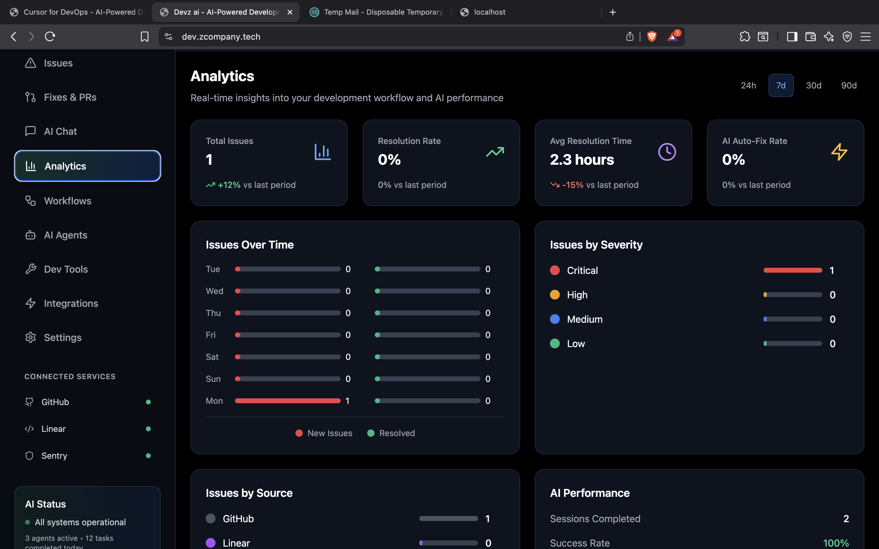 Our MVP: a developer homepage that aggregates your engineering to-dos and gives you AI-powered actions to resolve them. • Stack: Built with modern frameworks, integrated with GitHub, Sentry, and Linear APIs • Agents: Fine-tuned to interpret issues, fetch context, and open PRs autonomously • UX: Inspired by command centers and developer-first design principles