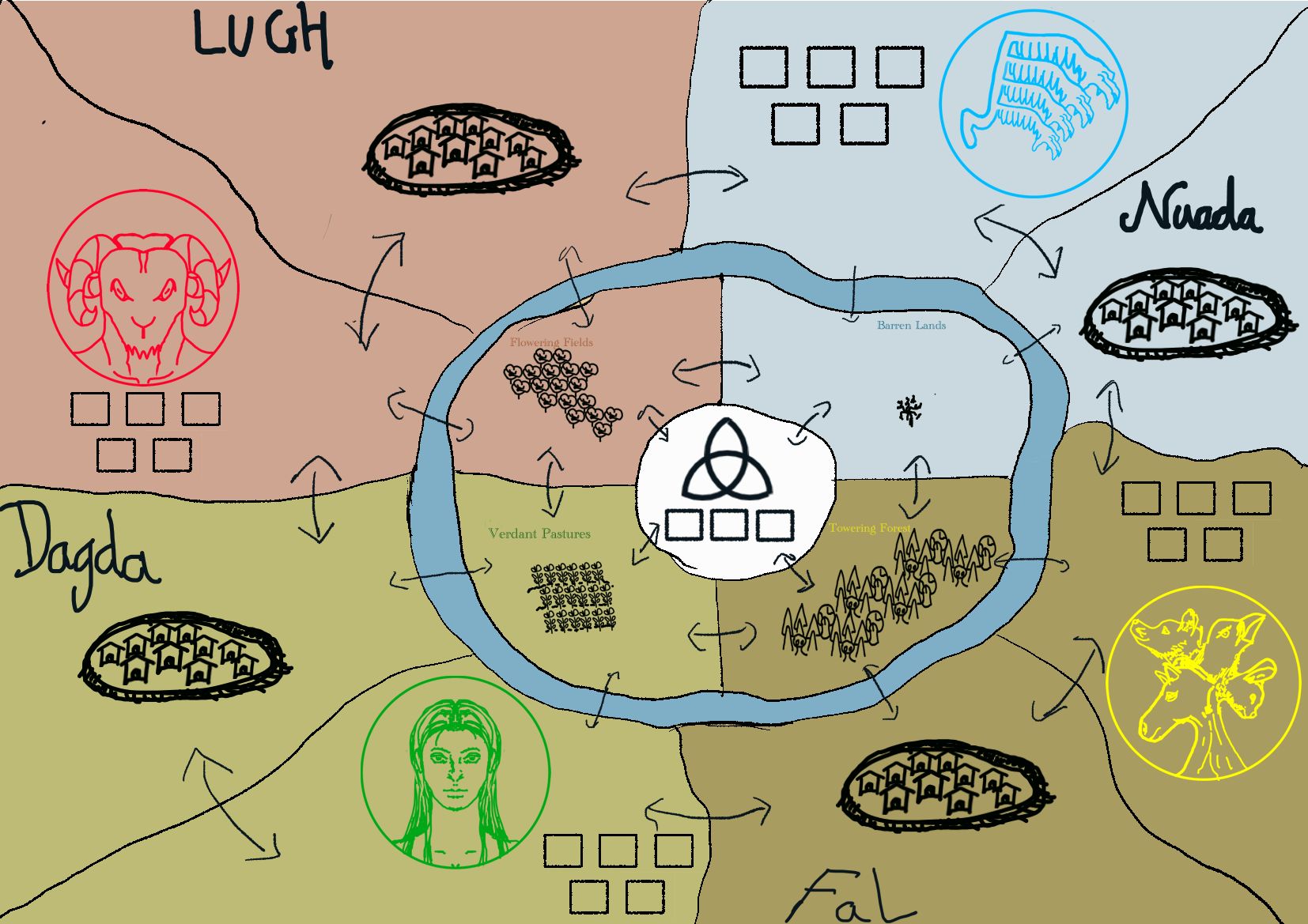 Originally conceptualised around players trying to fulfil a prophecy to become a Pagan god; where the drawn prophecy cards must occur, but the stories they gathered determined the details.