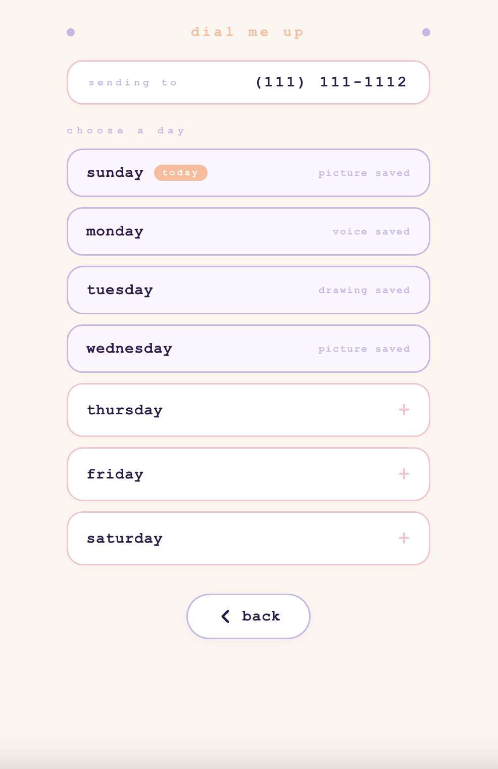 - Send and receive messages for each day of the week (pics with Snap AR lens, audio, drawing, letter)