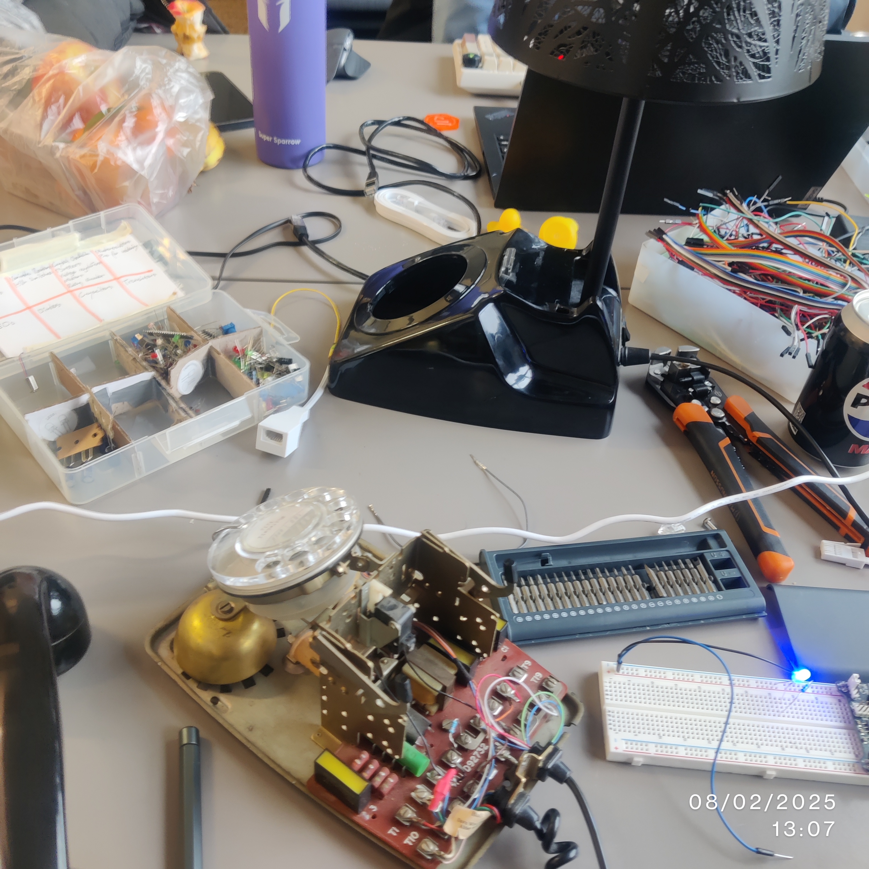 The project originally started as an excuse to mess with a novelty 80's tech became a full fledged story game using an old 1969 analogue rotary phone (Thank you Daudi's Mum!)