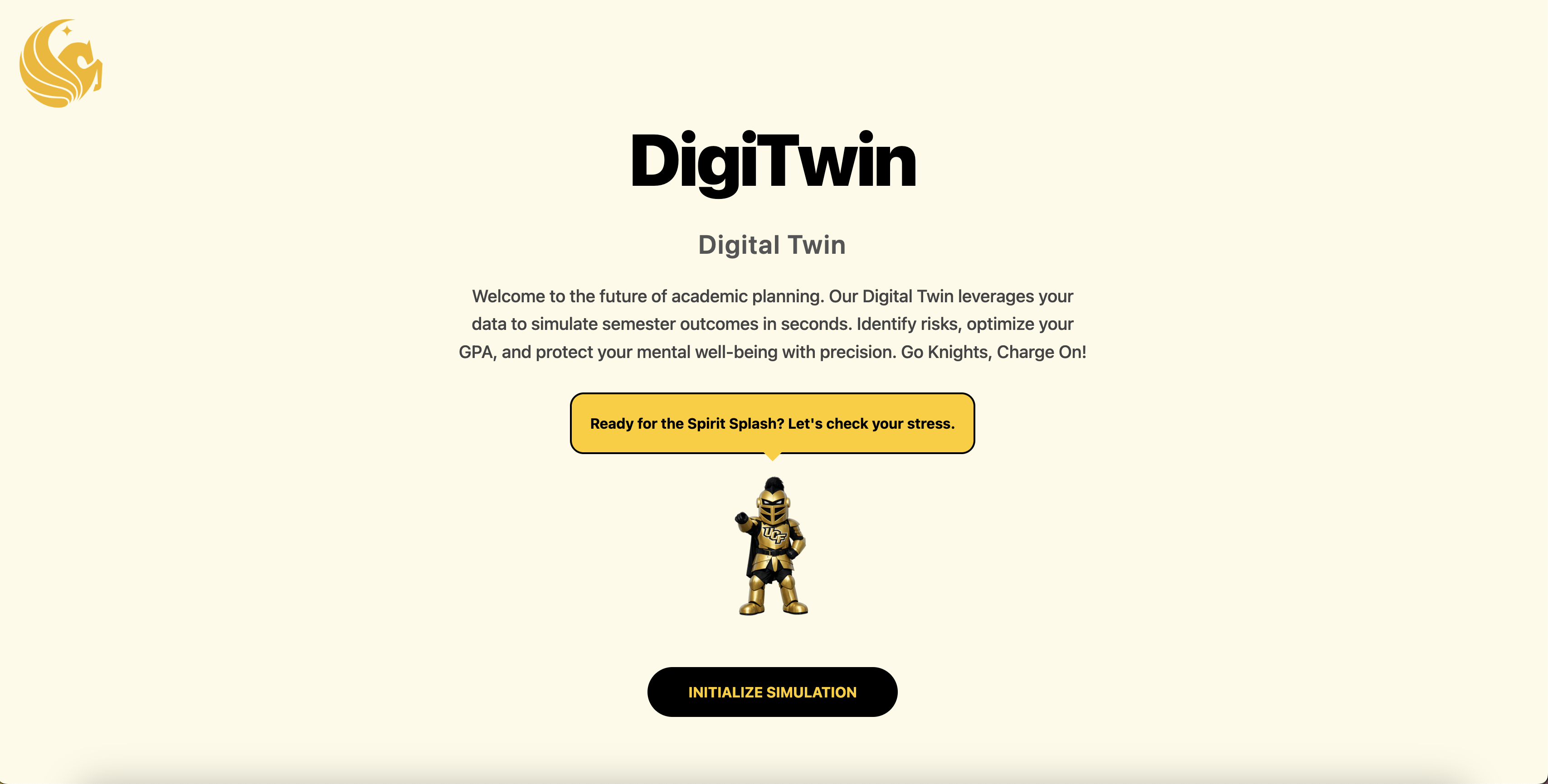 We are proud of the seamless integration between the mathematical simulation and the conversational AI. Seeing DigiTwin provide contextually aware advice based on a specific GPA feels like a major success. We successfully implemented a clean HTML architecture that allows for easy data entry across six different course modules. The tool feels tailor made for our campus community, especially with Knightro displaying UCF themed phrases throughout the application and suggested study spots.
