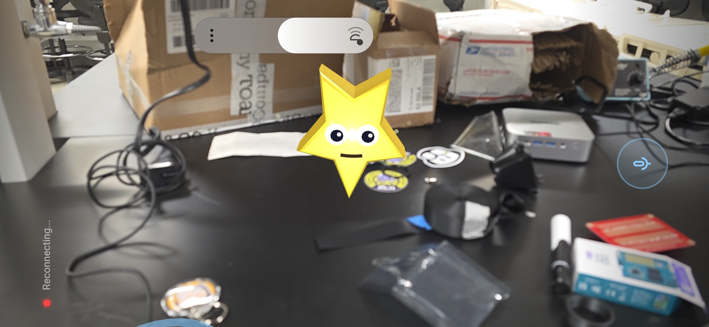 Snapdragon 8 Elite (Samsung Galaxy S25 Ultra) — The viewport. Runs a WebXR application in Chrome that renders the full 3D scene, executes LLM-generated three.js code in real-time, captures voice via Web Speech API, and displays the Dio avatar. Supports both handheld AR mode (with hit-test surface placement) and stereo VR mode (with camera passthrough for the headset).
