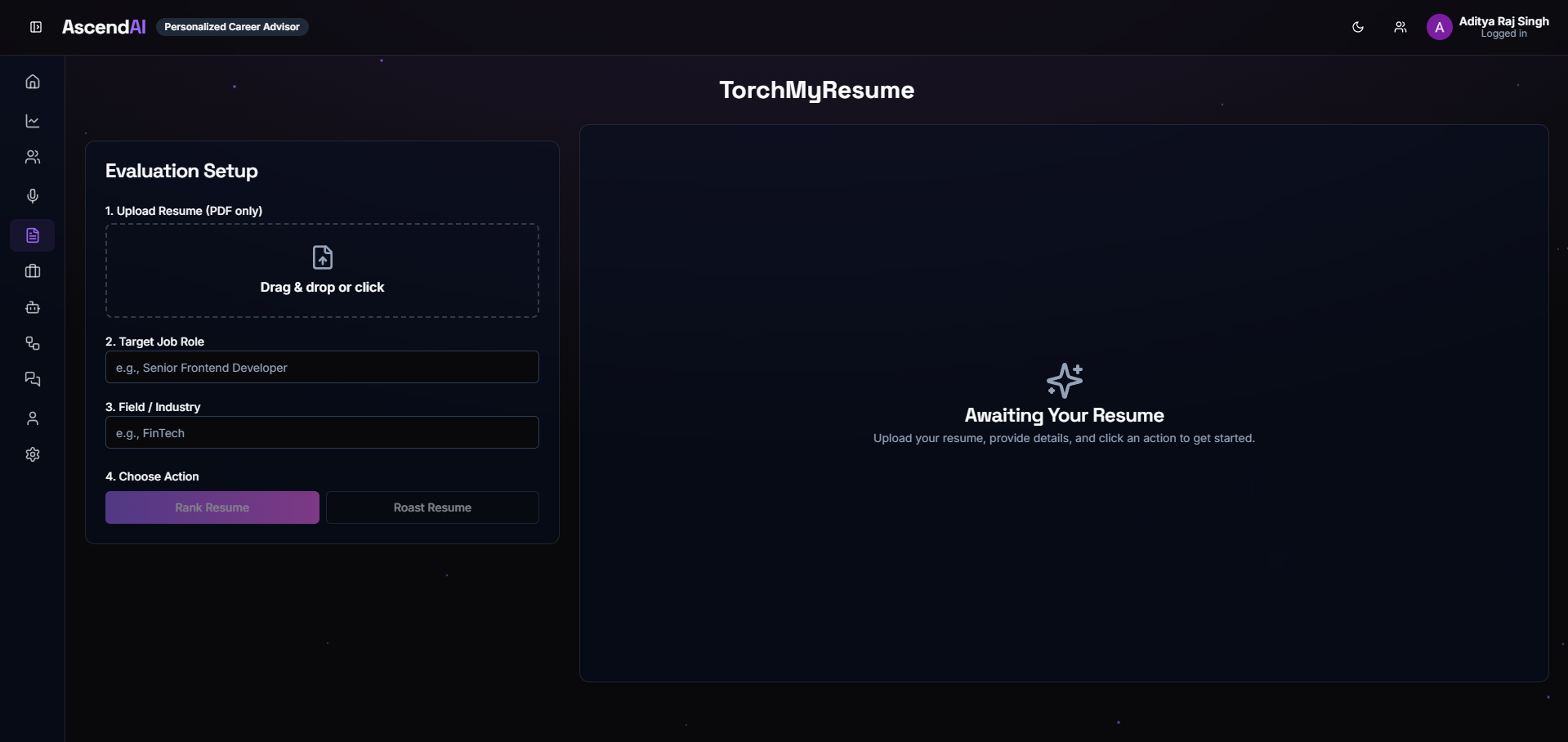 • Roast Mode: A humorous yet insightful critique of the resume to highlight clichés and errors.