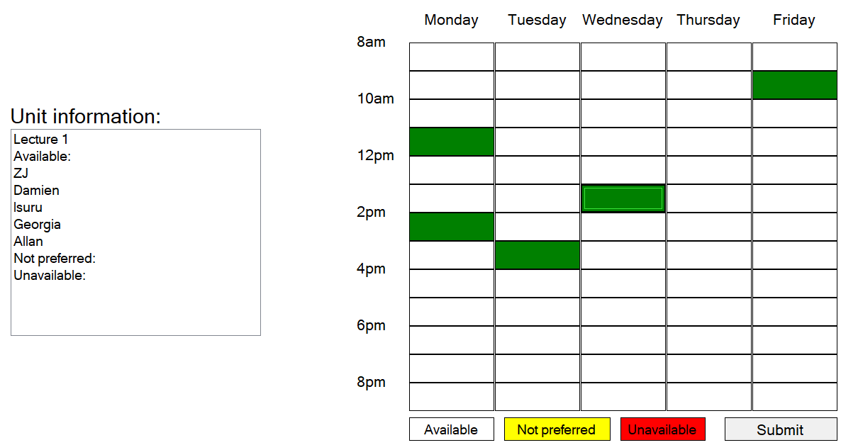This innovative program allows each student in a friend circle to input their availabilities and preferences into a simple to use GUI. The students also provide their unit code, which allows the software to obtain all the class times. With some magic (and code), it will present the best classes to pick so that the greatest number of friends are able to be together according to their preferences.