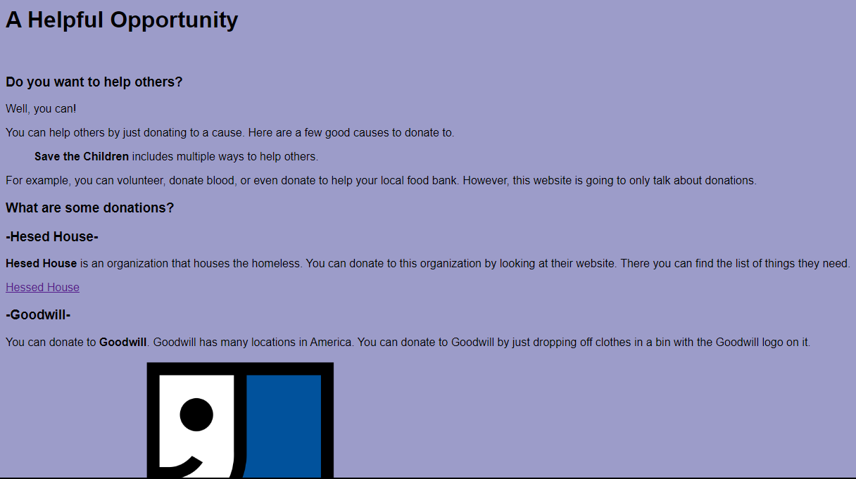 The inspiration for this came from the theme of the competition: Service to Others. Volunteering and donations are the perfect examples of donations.