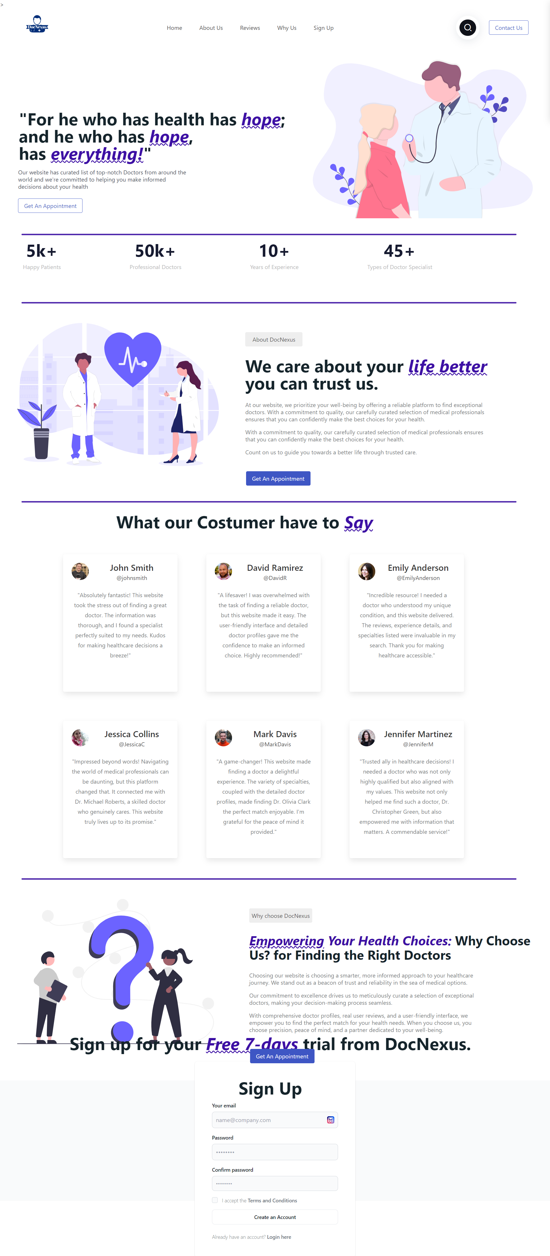 The need for a reliable platform that simplifies the process of finding exceptional doctors and making informed healthcare choices has inspired us to create DocNexus. Our goal is to provide a solution that empowers individuals to take control of their health journey with confidence and convenience.
