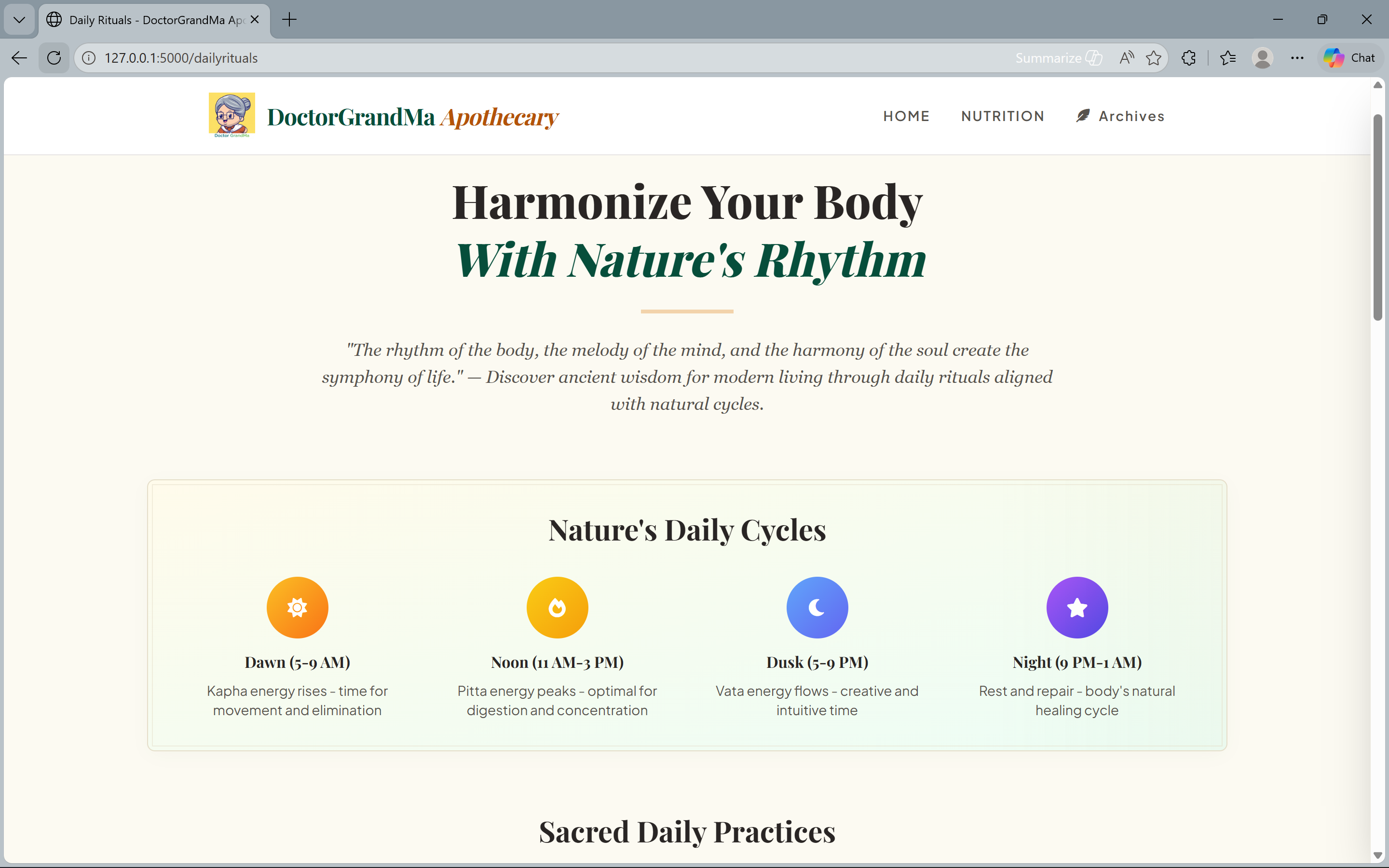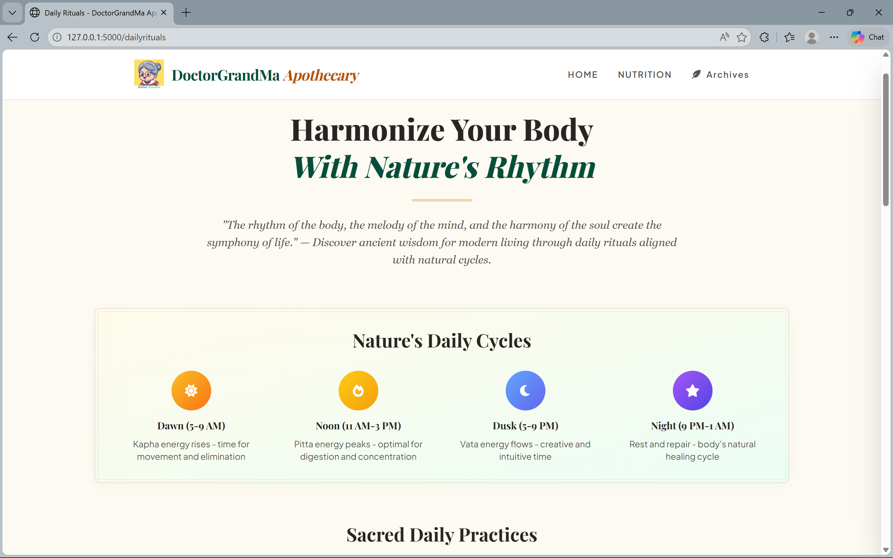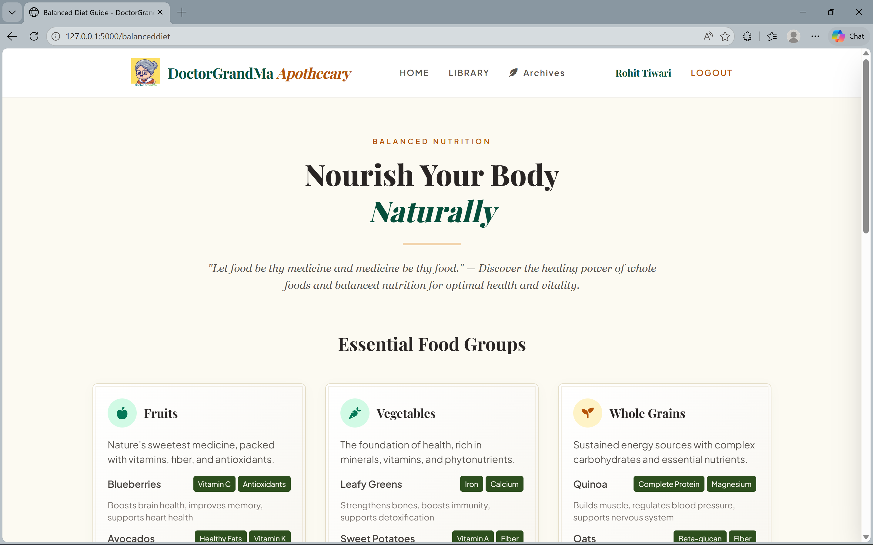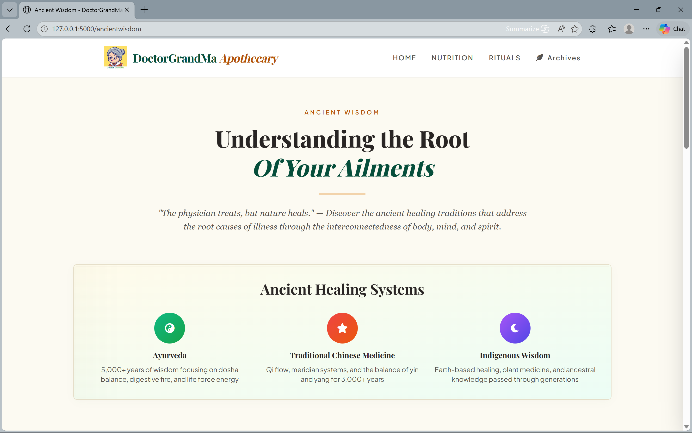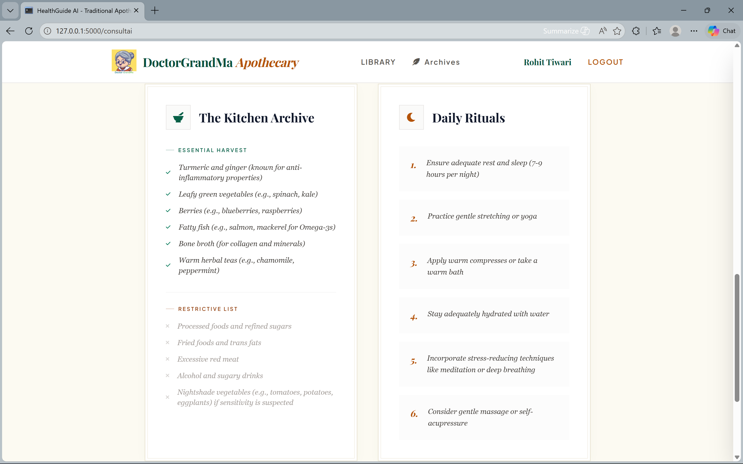 The inspiration comes from the universal figure of the "Doctor Grandma"—the person who always knew exactly which tea would settle a stomach or which ritual would cure a headache. We wanted to digitize this warmth and ancestral knowledge, combining it with the precision of modern AI to provide a wellness tool that feels more human than clinical.