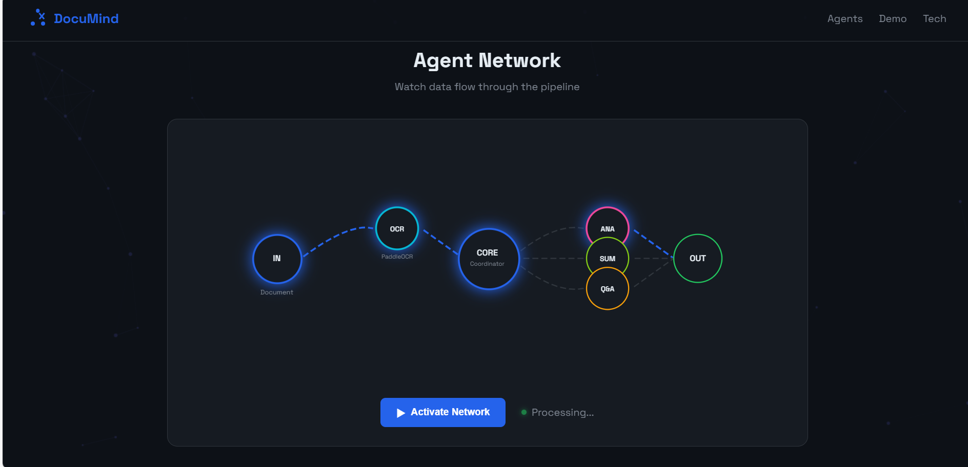 DocuMind is a multi-agent document analysis system. You upload a PDF, and it: