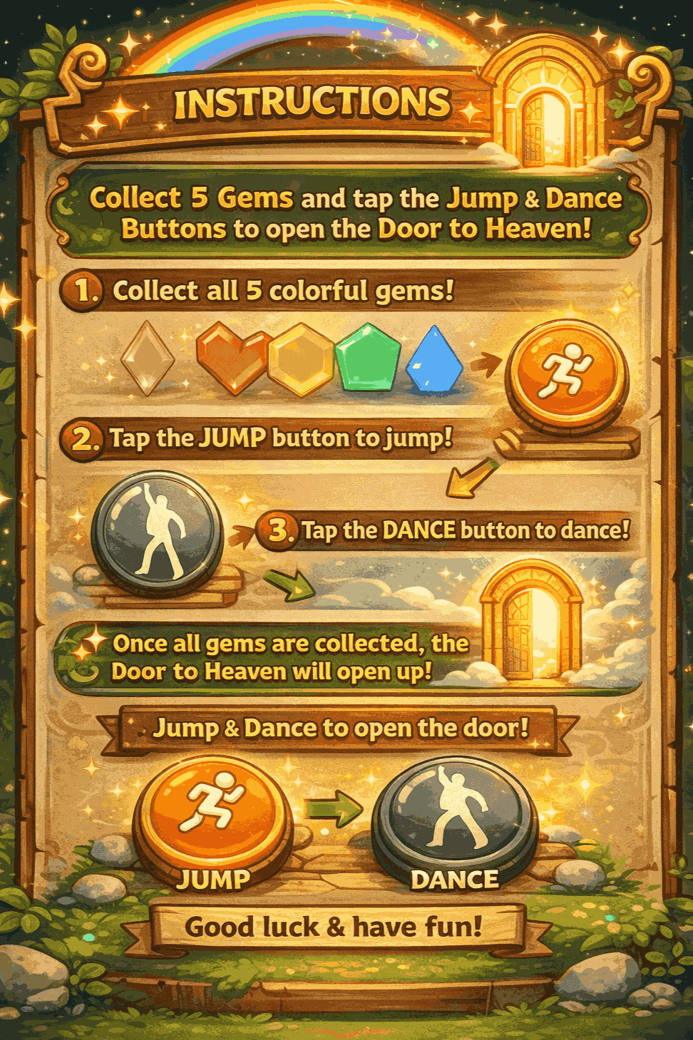 Door to Heaven is a casual interactive game where players collect five gems to unlock a divine door. Once unlocked, the player reaches the final point to trigger a victory moment with visuals and sound, creating a clear win-lose experience.